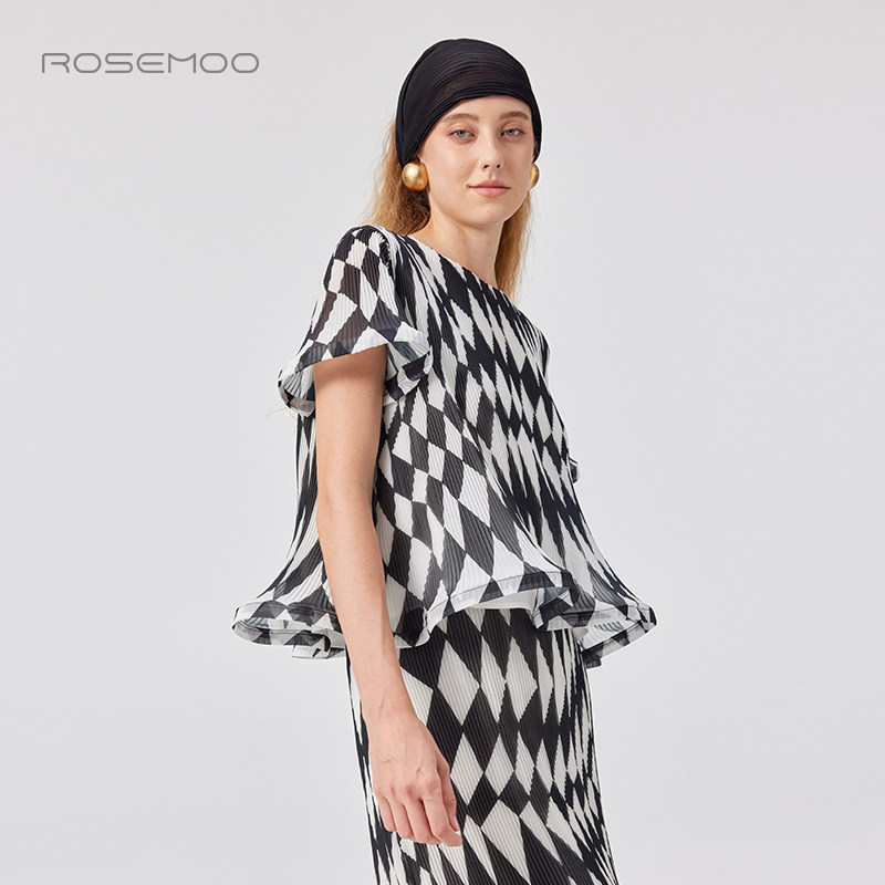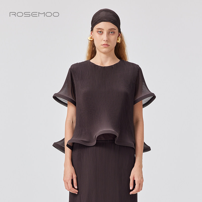 📚 ROSEMOO/容子木25夏商场同款柔软压褶清透小细边上衣RSS2TP448D