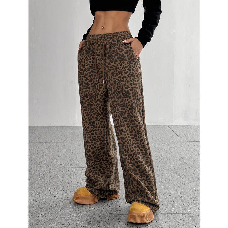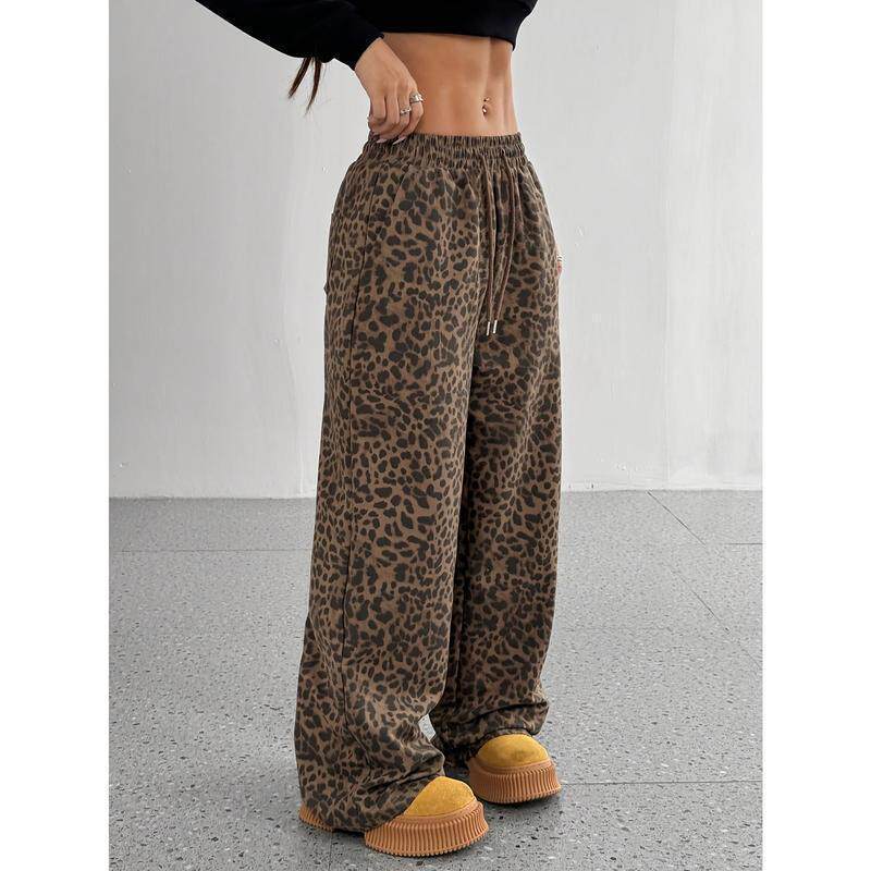📚 Chic Leopard Print Drawstring StraightLeg Pants for Women