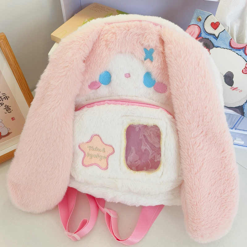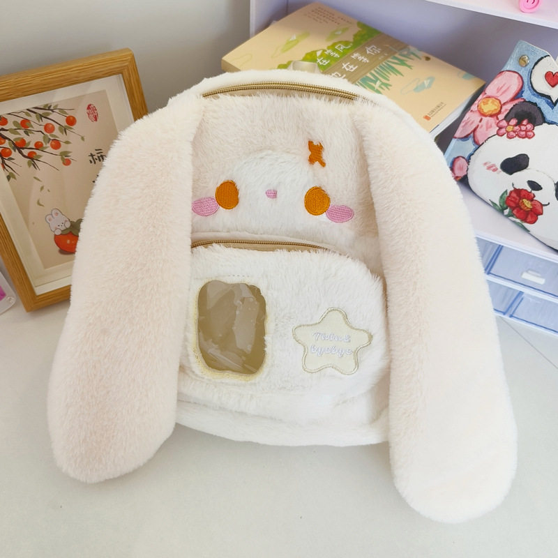 📚 2024长耳兔毛绒双肩包韩版休闲卡通背包少女心学生可爱小书包软妹