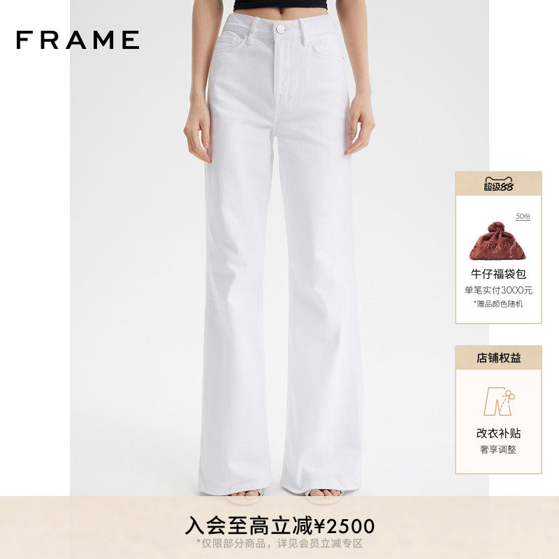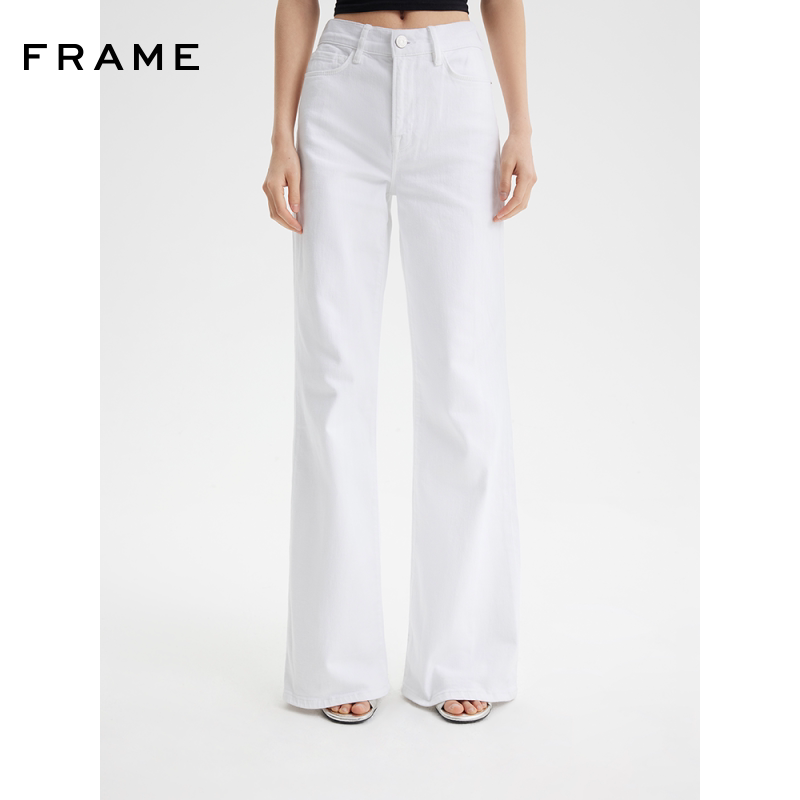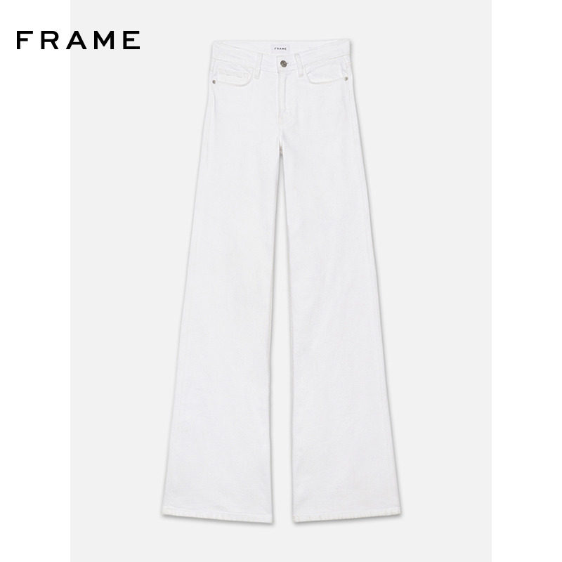 📚 【经典款】FRAME女士白色阔腿高弹高腰denim牛仔裤SLIM PALAZZO