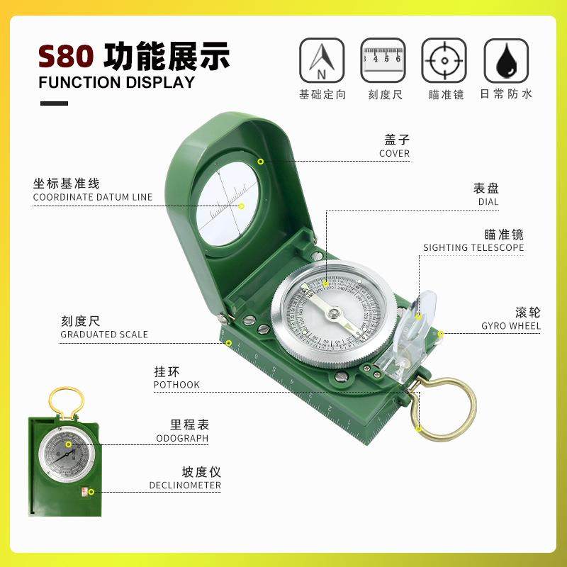 📚 S80强磁精确指南针指北针地质罗盘野营探险登山指南针户外用品