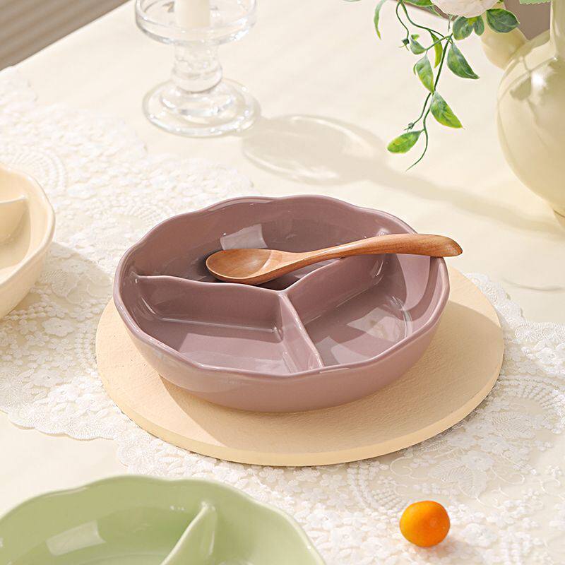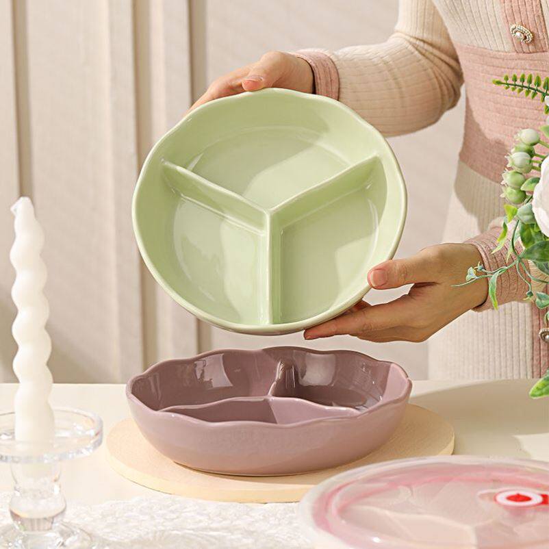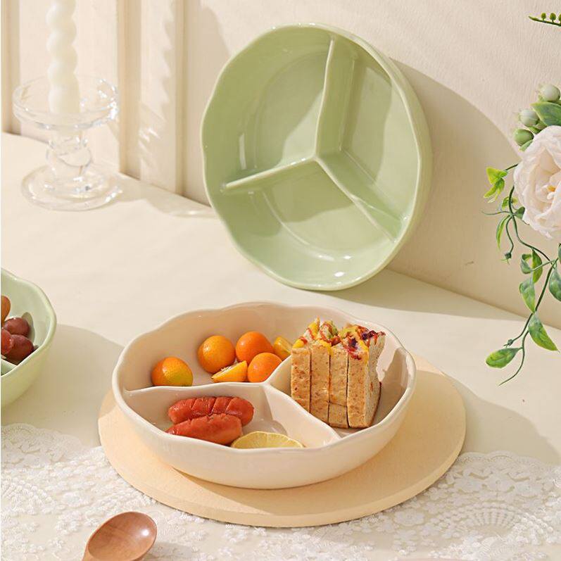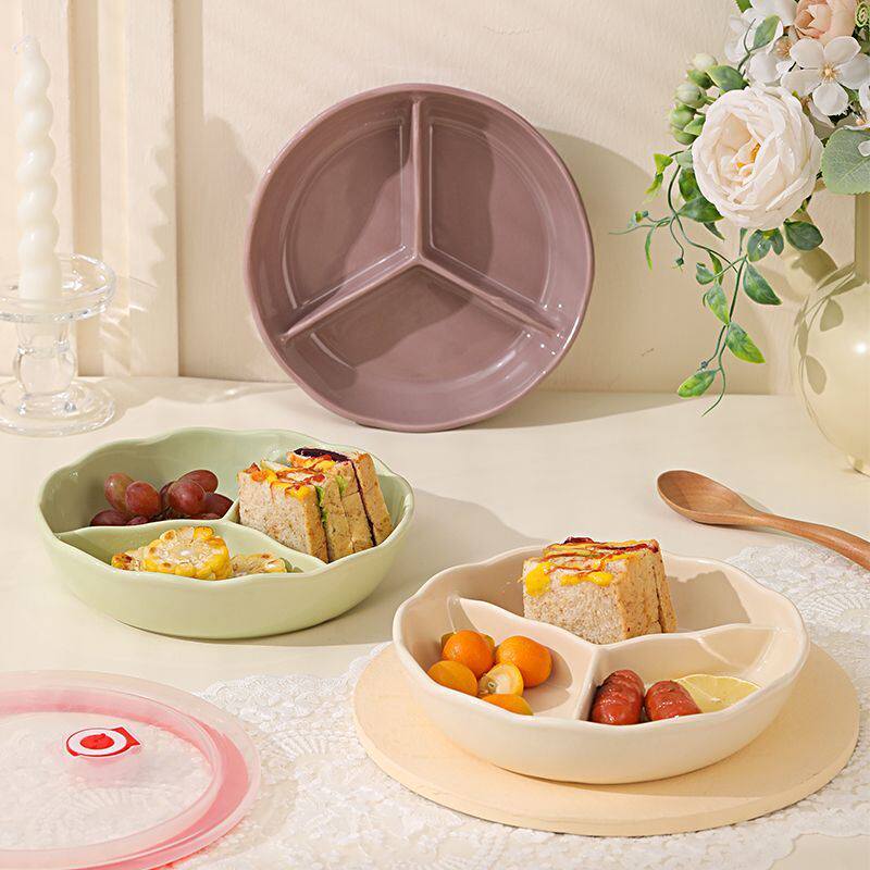 📚 ins风陶瓷分隔餐盘减肥家用早餐减脂餐具分格盘子三格定量一人食