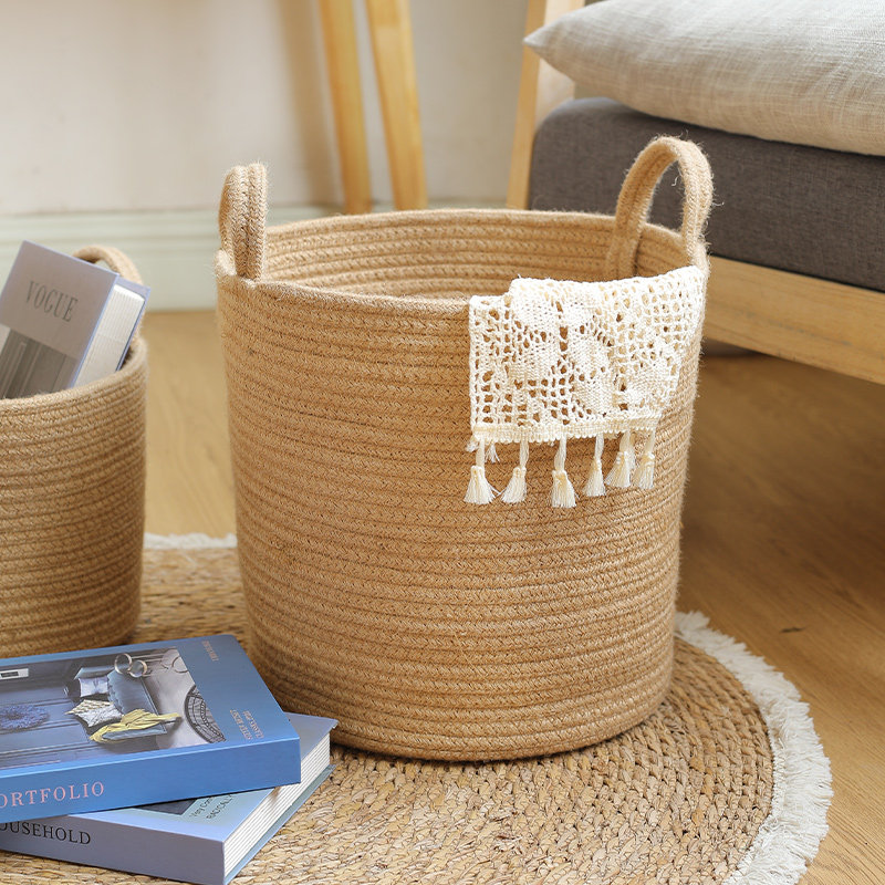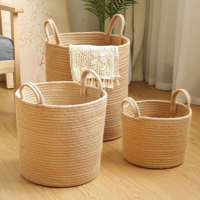 📚 日式ins风黄麻绳编制脏衣篮大容量脏衣篓家用手提衣物玩具收纳桶