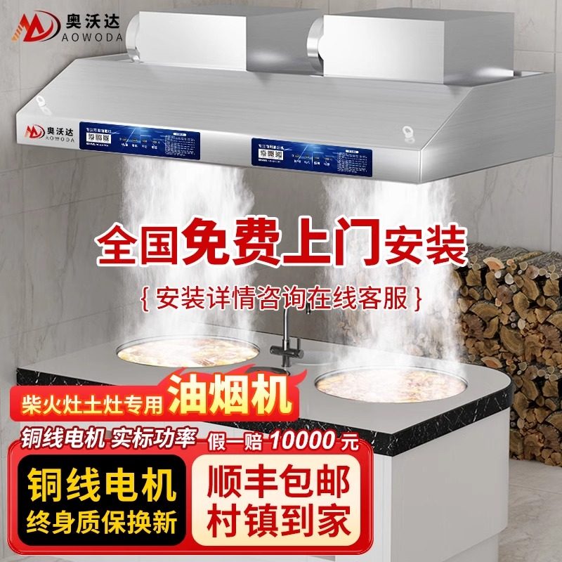 📚 奥沃达农村柴火灶土灶大功率油烟机新农村自建房别墅双锅油烟机