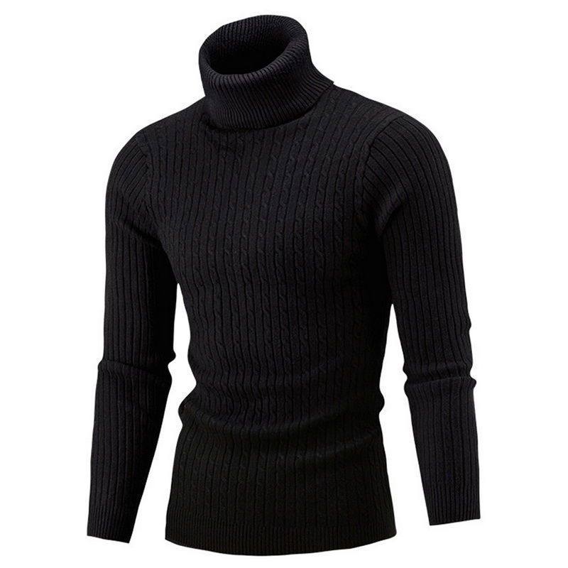 📚 Amazon冬季男式毛衣修身型可翻高领套头打底衫扭花长袖保暖针织衫