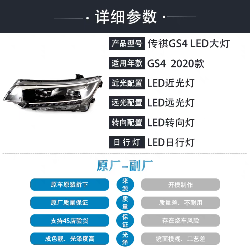 📚 适用传祺GS4高配前LED大灯总成20年21新款改装车配件正品原装原厂