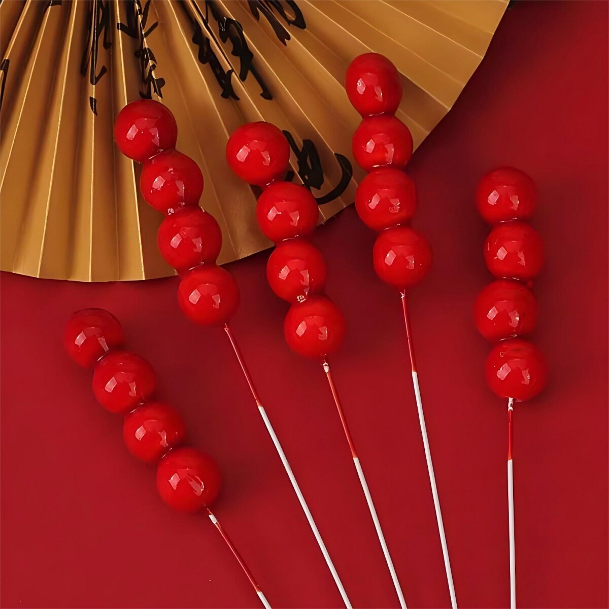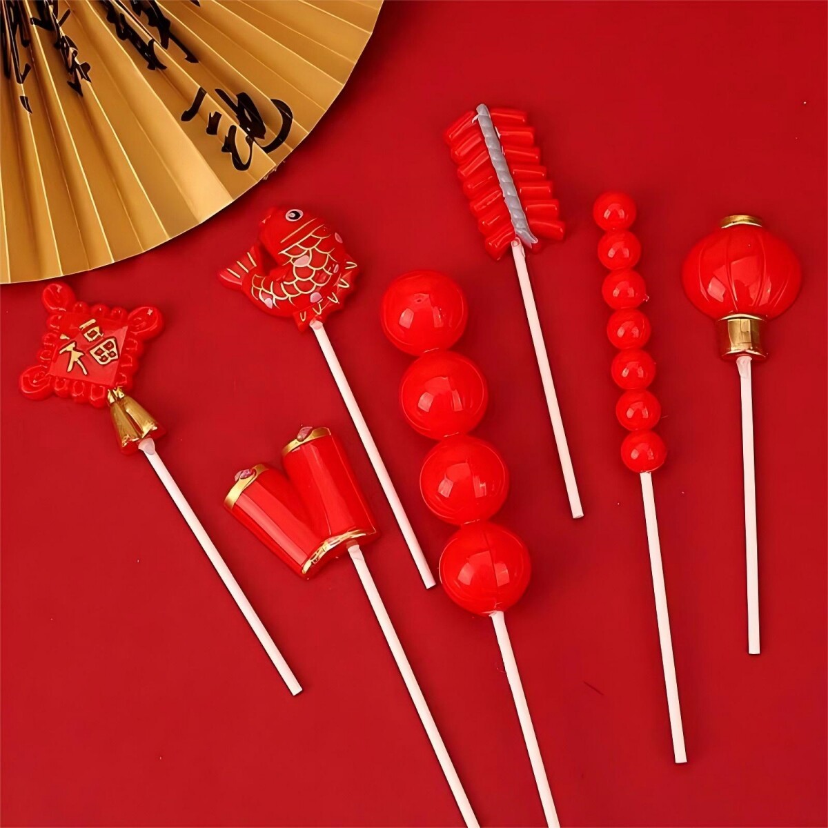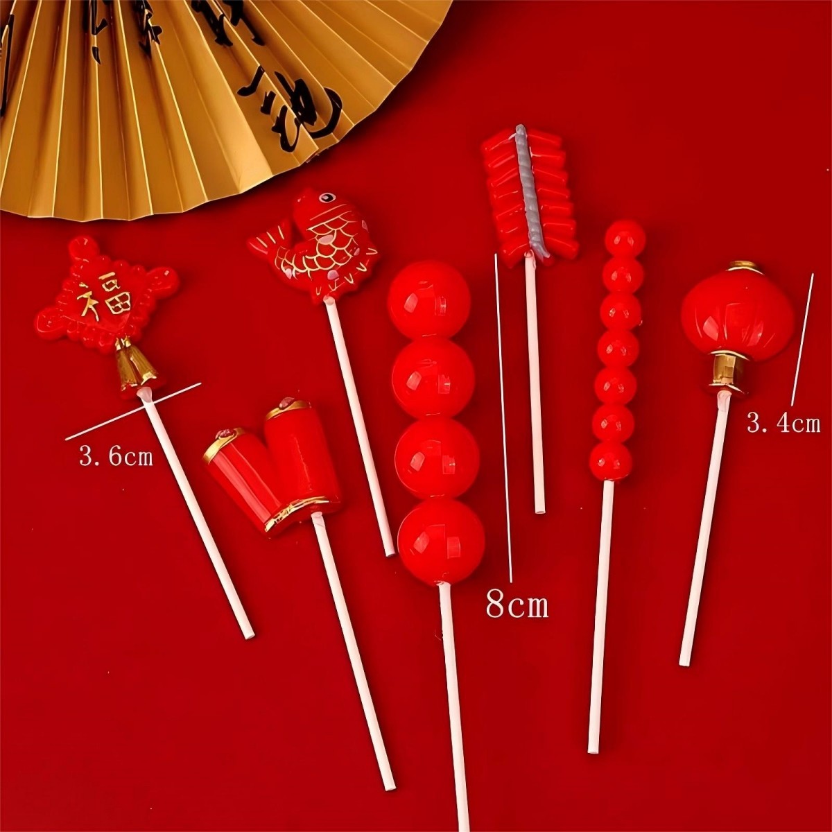 📚 新年祝寿蛋糕装饰糖葫芦塑料红鲤鱼灯笼鞭炮中国结跨年春节插件