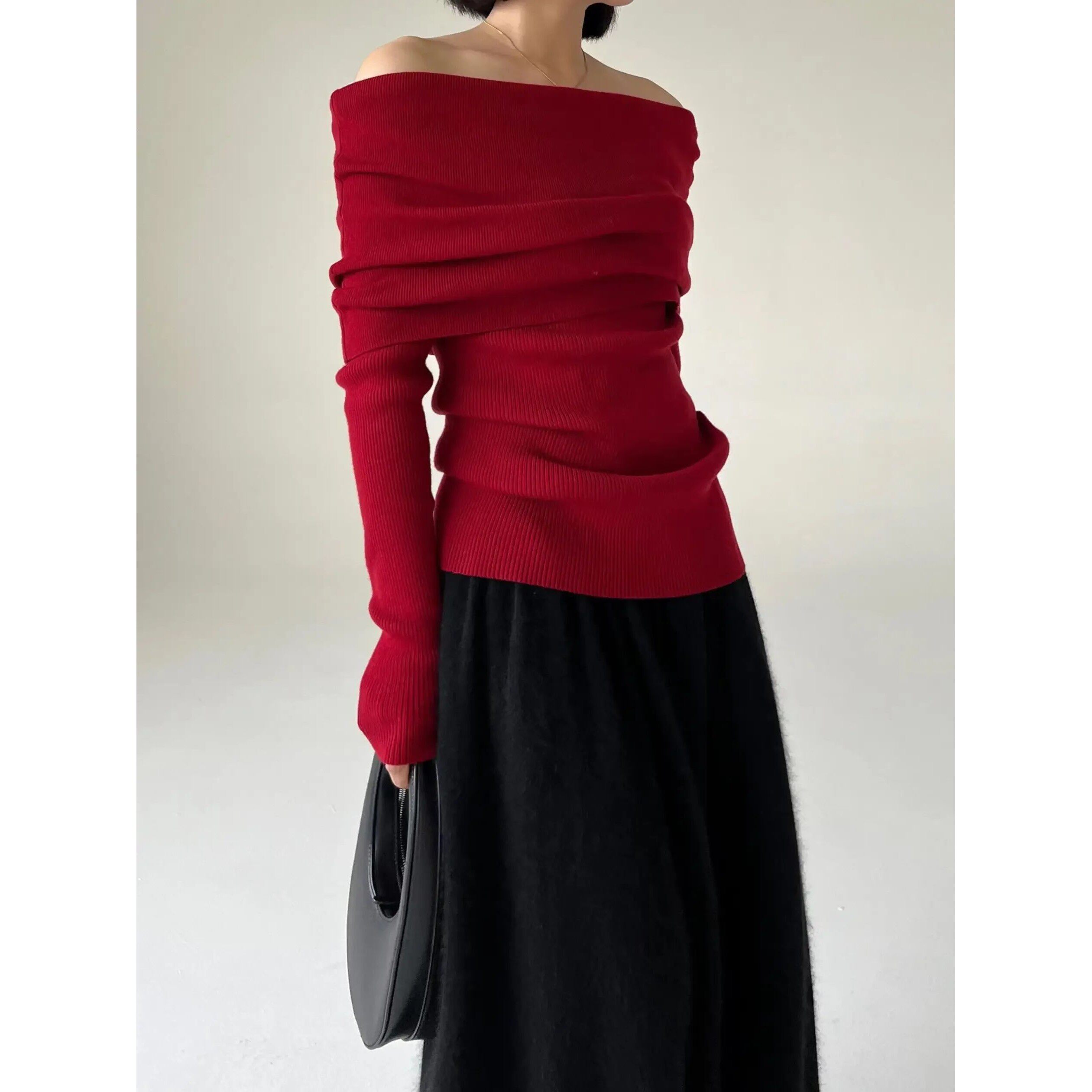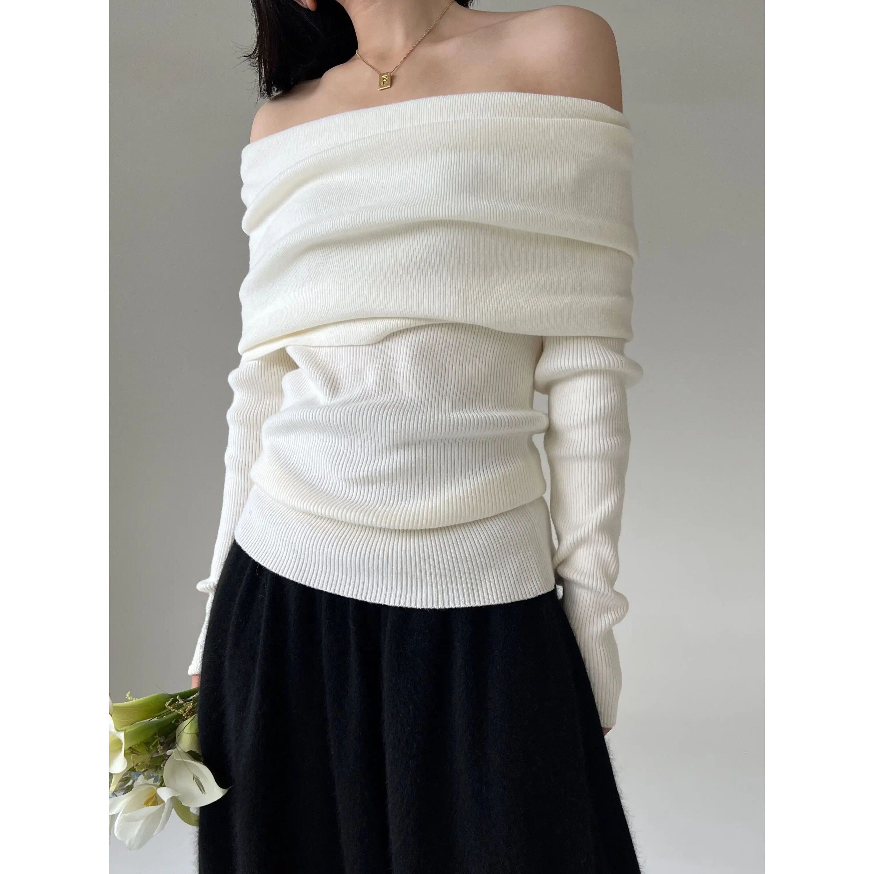 📚 Autumn Winter Off Shoulder Women Sweaters Elegant Vintage Kn