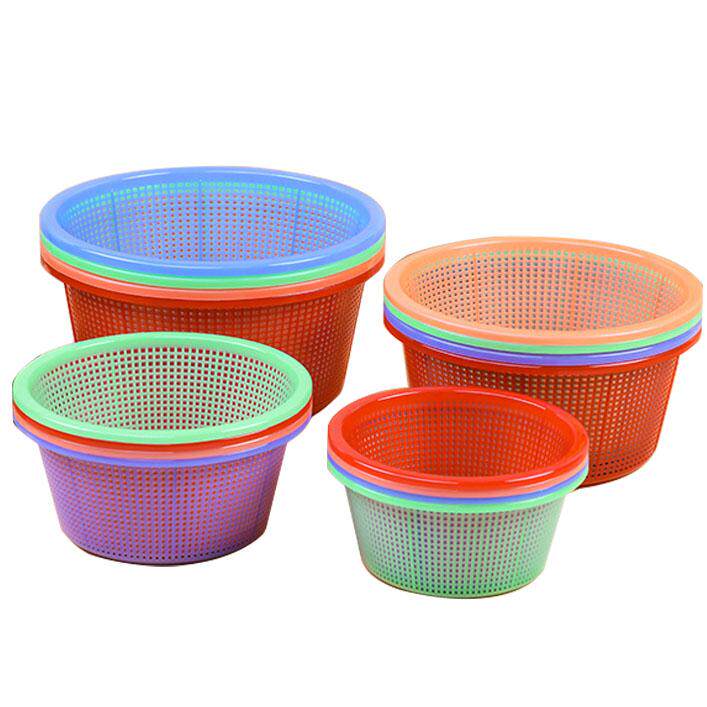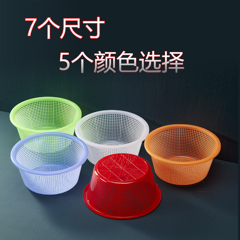 📚 【5个装】加深密眼淘米塑料箩筐吃粉胶筛沥水菜篮圆形漏盆大小号