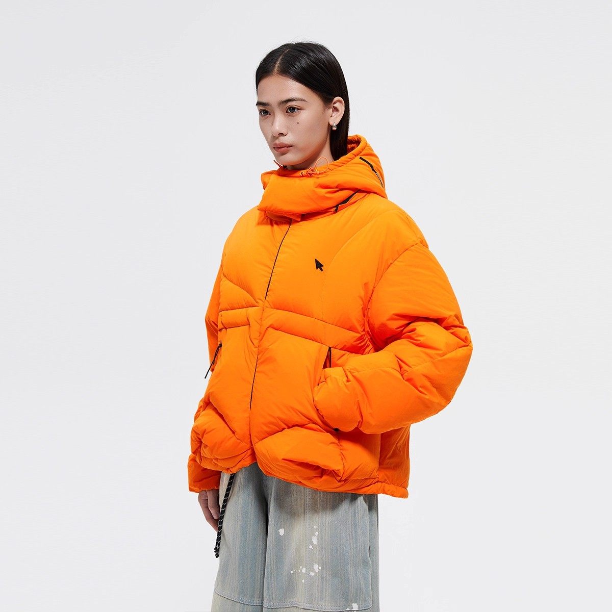 📚 FMACM 23AW 不规则绗缝立体结构箭头刺绣口袋可拆卸连帽羽绒服