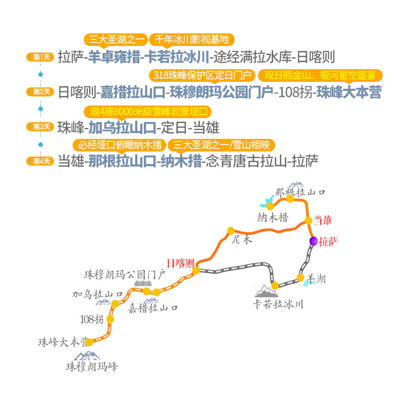 📚 4日游西藏旅游拉萨珠峰大本营羊卓雍措纳木错圣象天门四天行报团