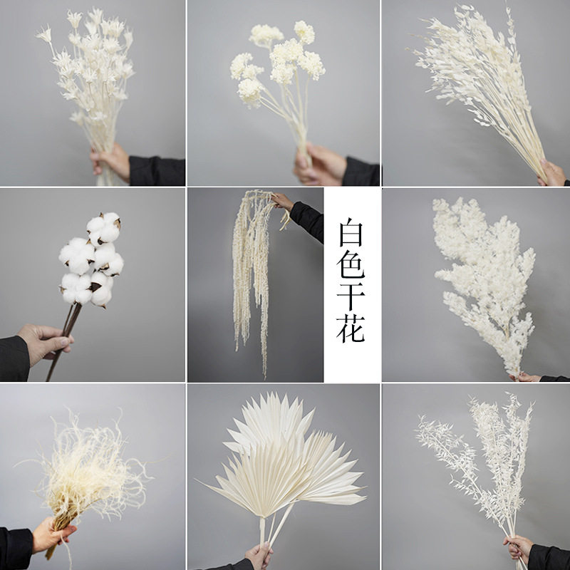 📚 白色干花奶油风真花花束摆件装饰宿舍蓬莱松龙须草粉黛满天星棉花