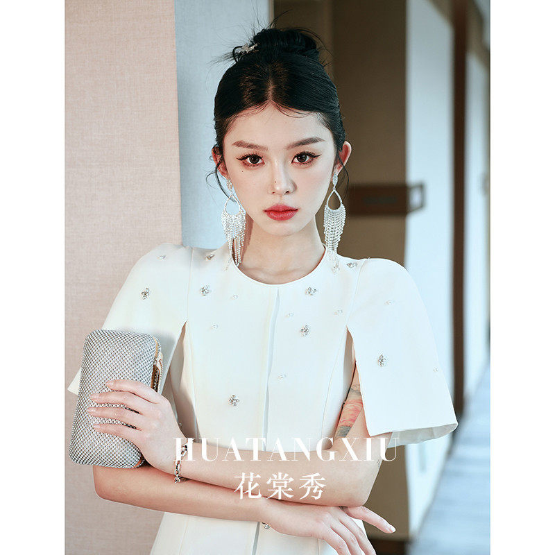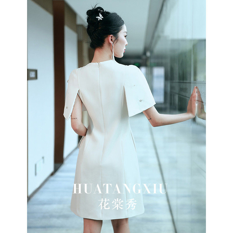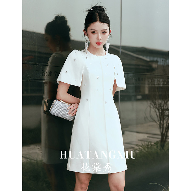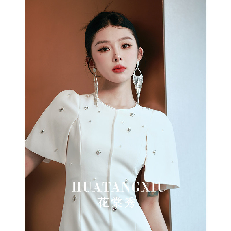 📚 新品白色晚礼服裙宴会气质主持人轻奢高端高级感小个子日常可穿成