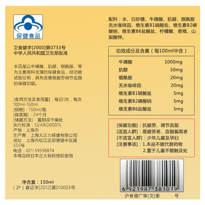 📚 力保健功能饮料抗疲劳调节血脂牛磺酸饮加量款150ml*10瓶