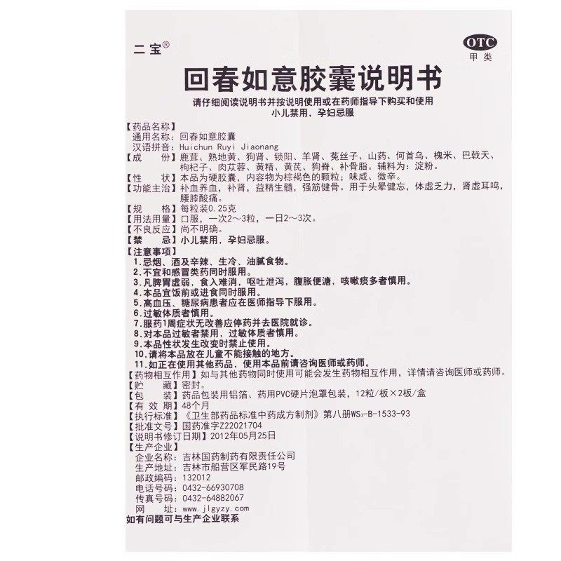 📚 二宝 回春如意胶囊72粒补血养血补肾益精生髓强筋健骨肾虚