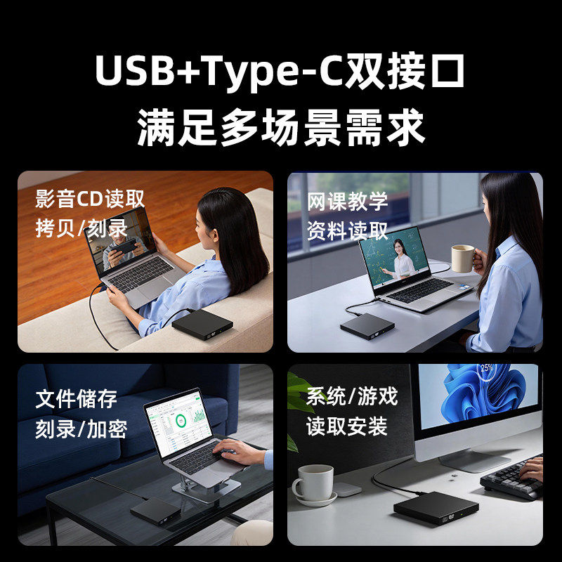 📚 USB外置光驱盒笔记本台式机电脑DVD播放机CD影碟光盘读取器刻录
