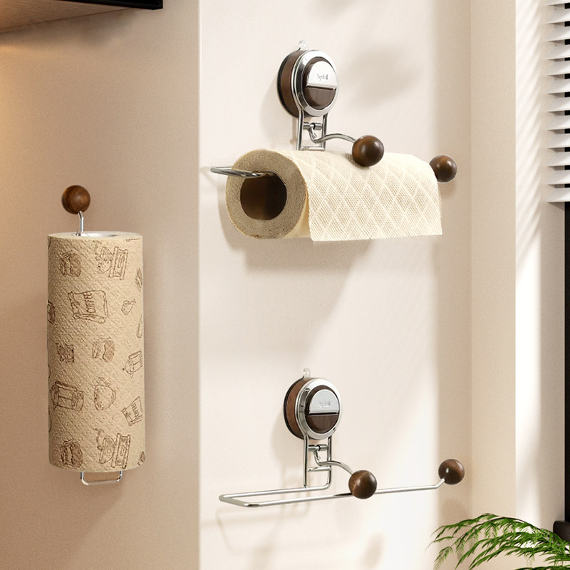 📚 厨房纸巾置物架免打孔橱柜用木纹纸挂架吸盘抹布保鲜膜挂架