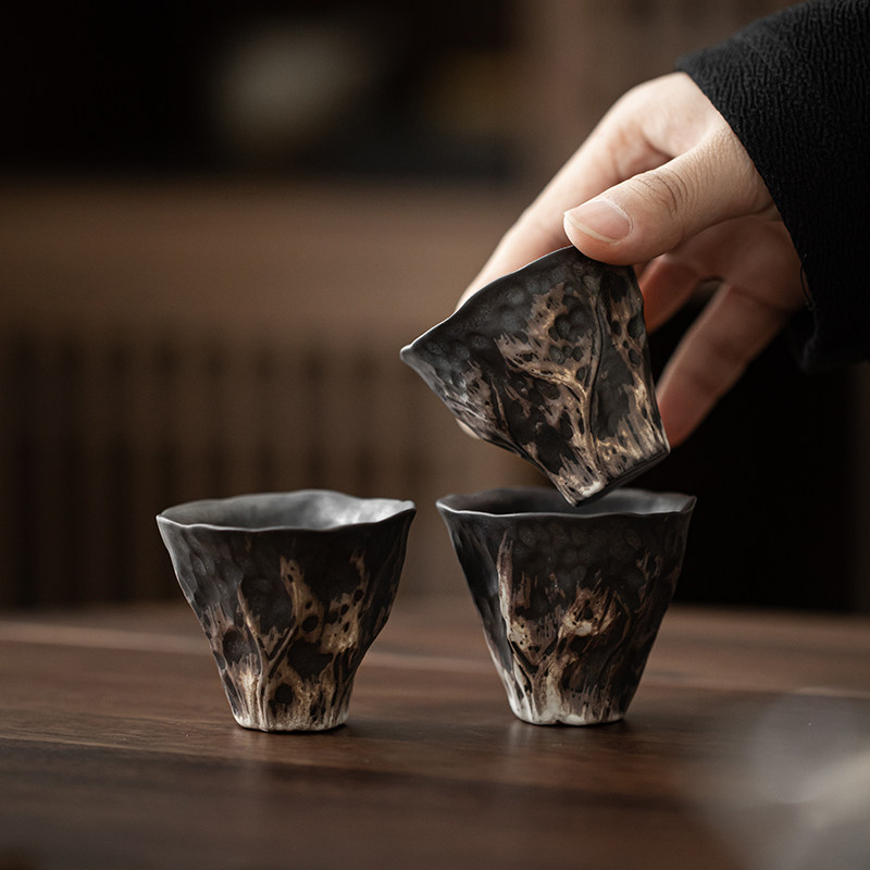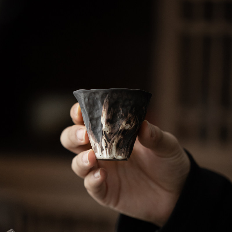 📚 蕴华堂侘寂静物黑陶手工粉引家用茶杯复古中式禅意小号品茗杯单杯