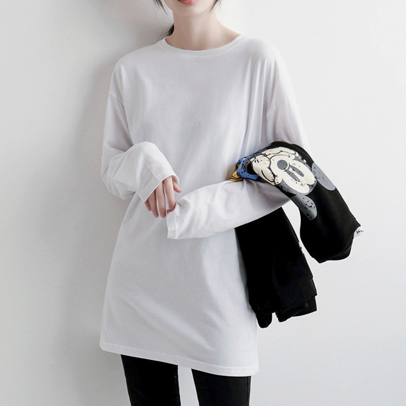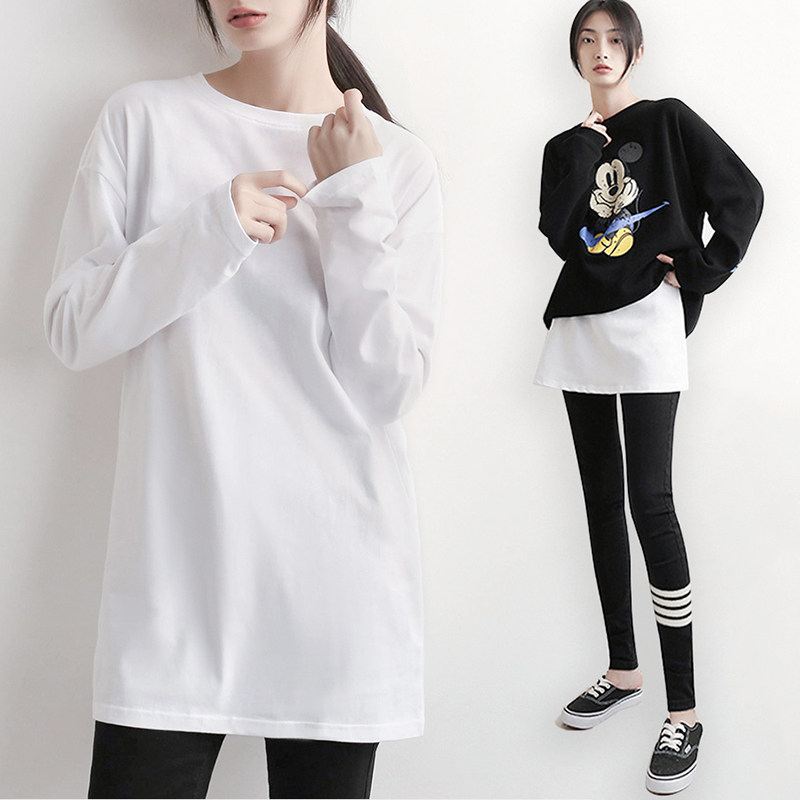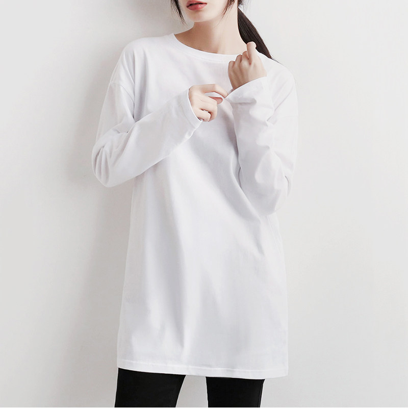 📚 大白体t恤女盖屁股新款长版纯棉白色打底衫秋冬高级感宽松上衣t衫