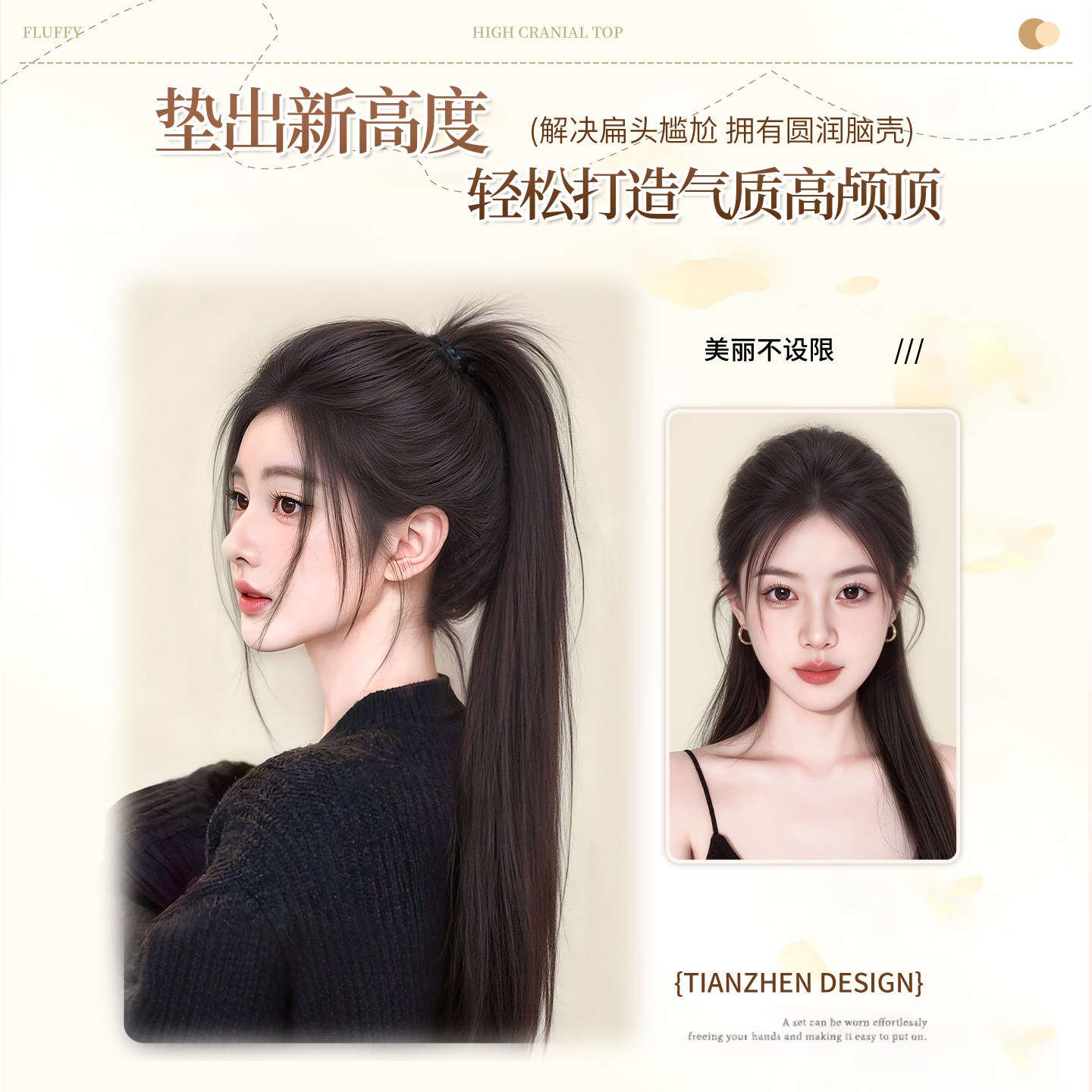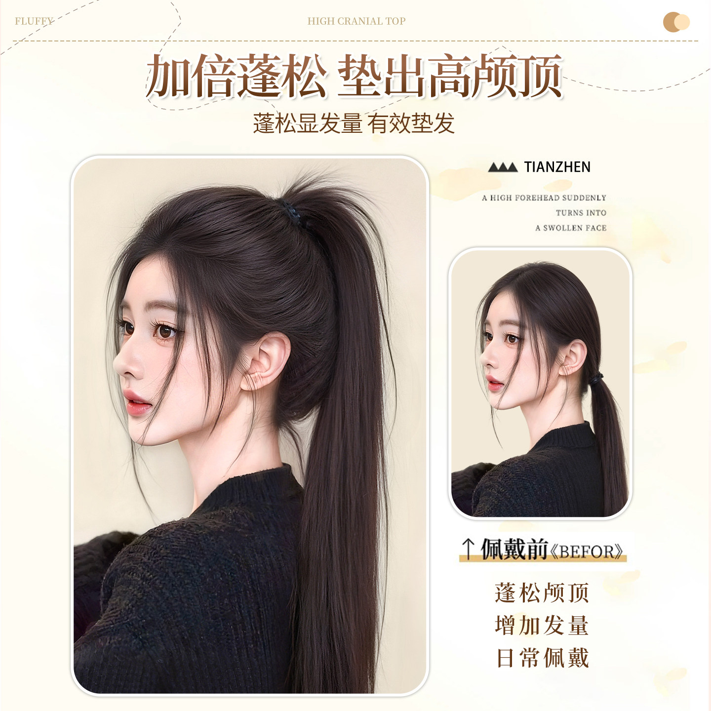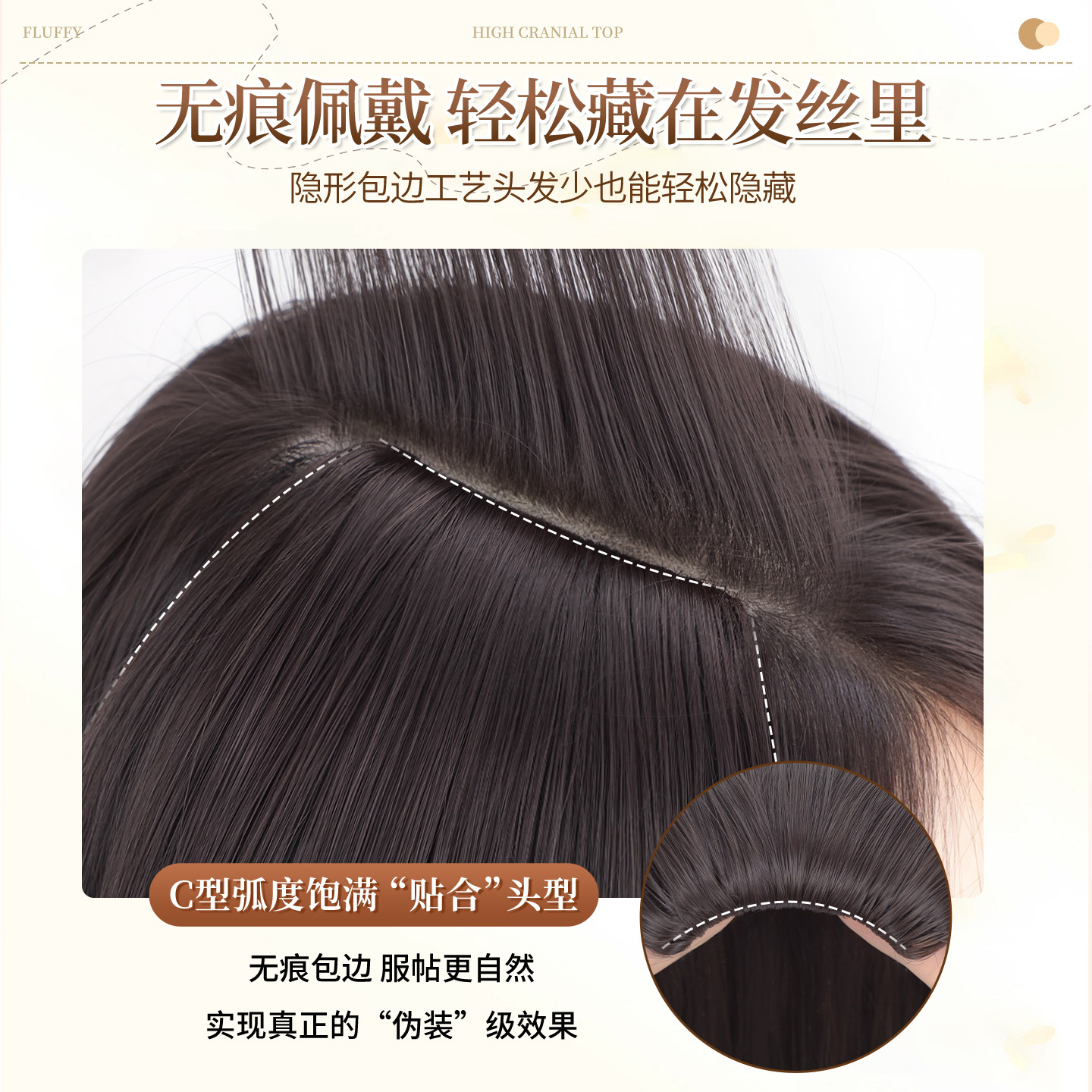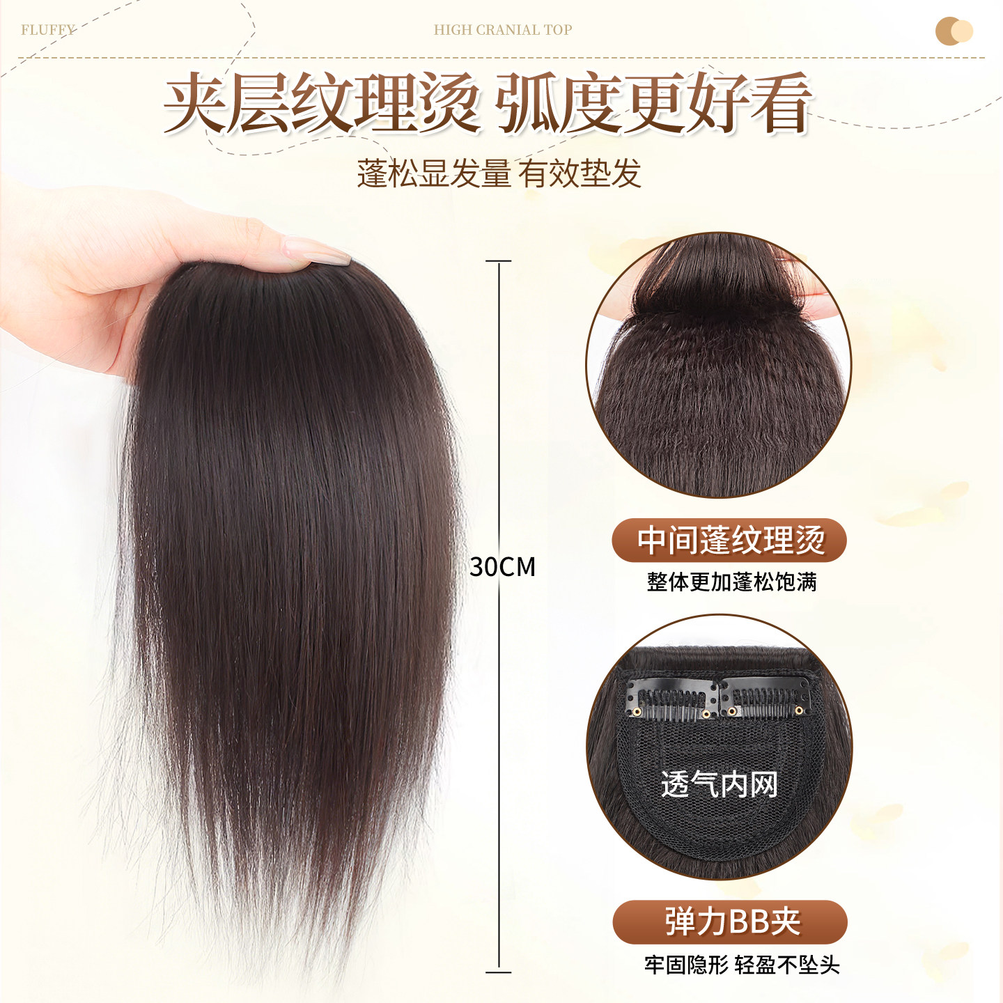 📚 假发片增发量蓬松高颅顶垫发片御姐风高级感纹理烫后脑勺扁头神器