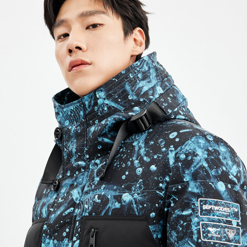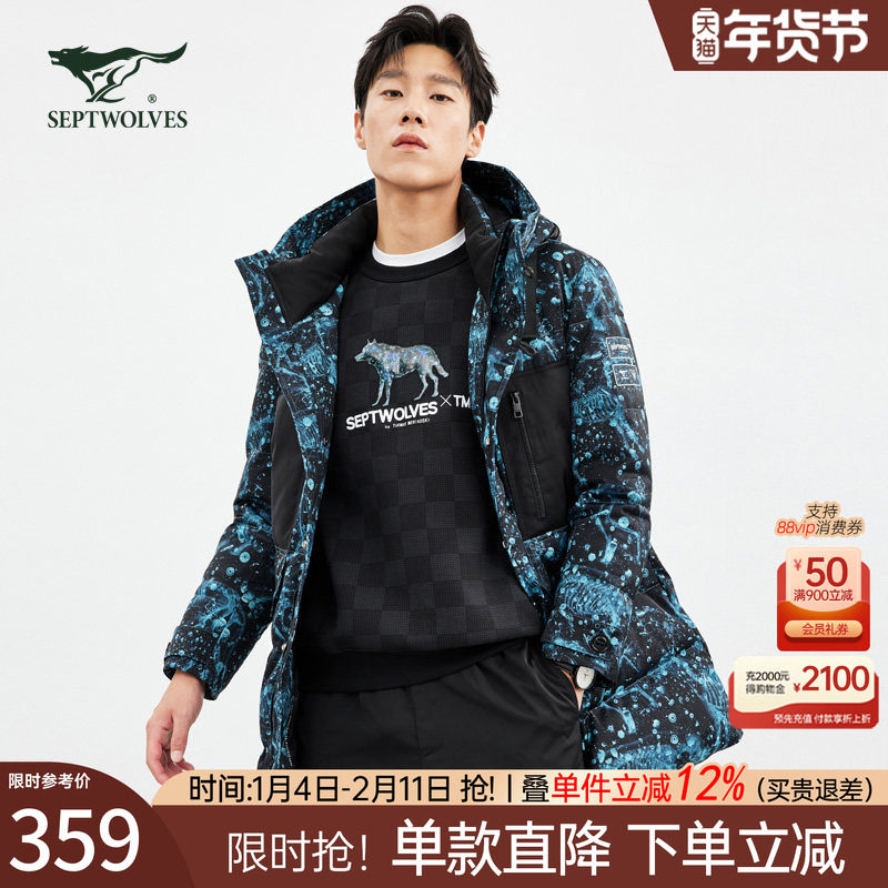 📚 七匹狼官方正品中长款羽绒服男士冬季连帽印花外套加厚保暖男装潮