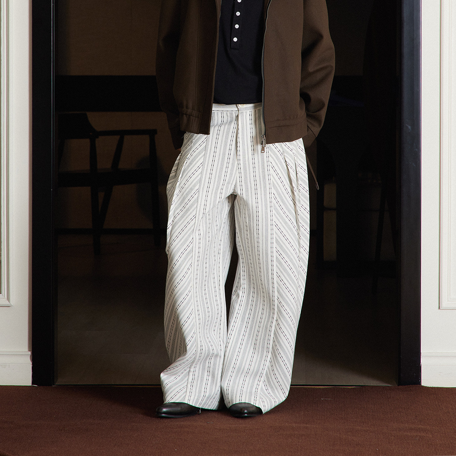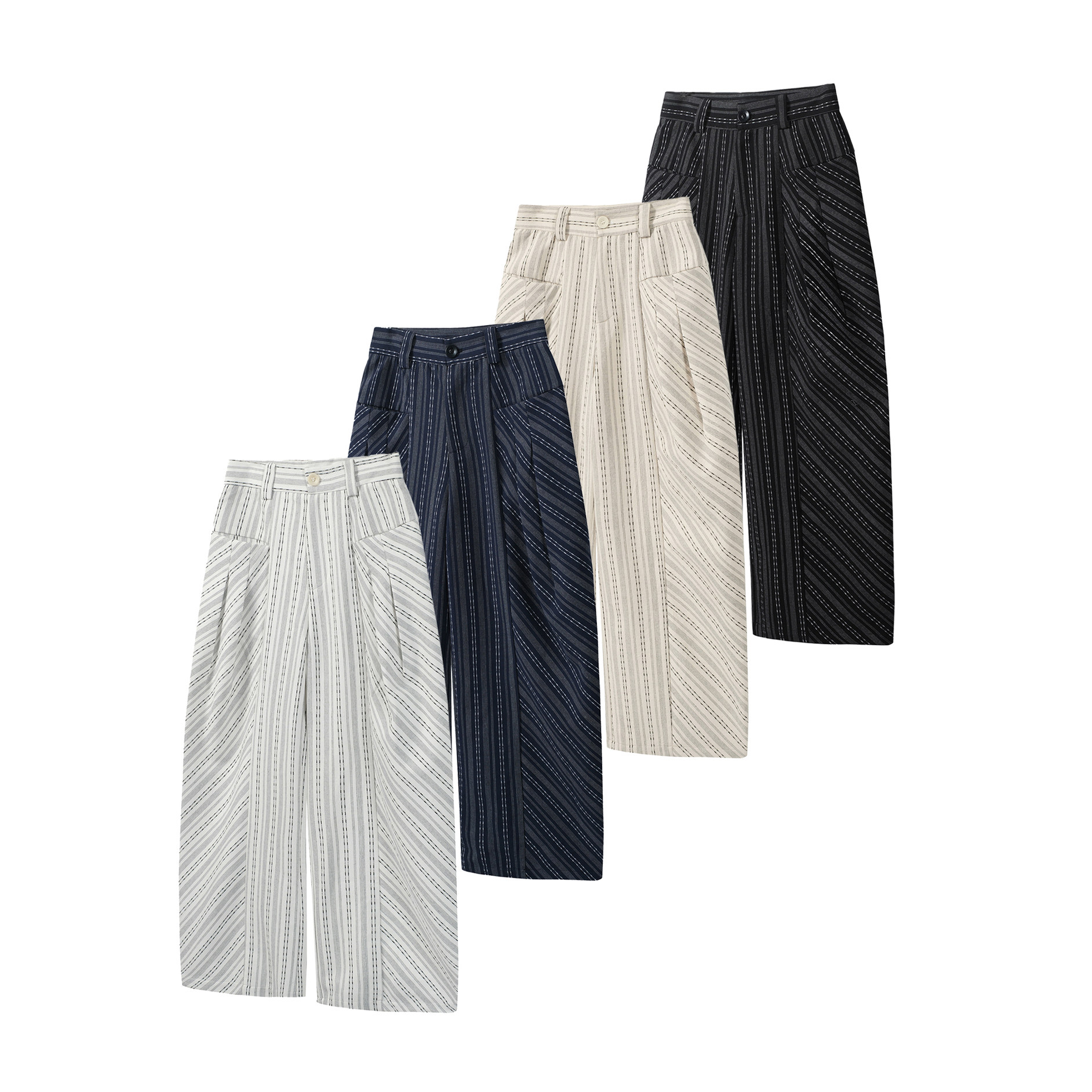📚 TZ killer Striped Pleats 条纹褶皱西裤 百搭宽松弯刀阔腿长裤