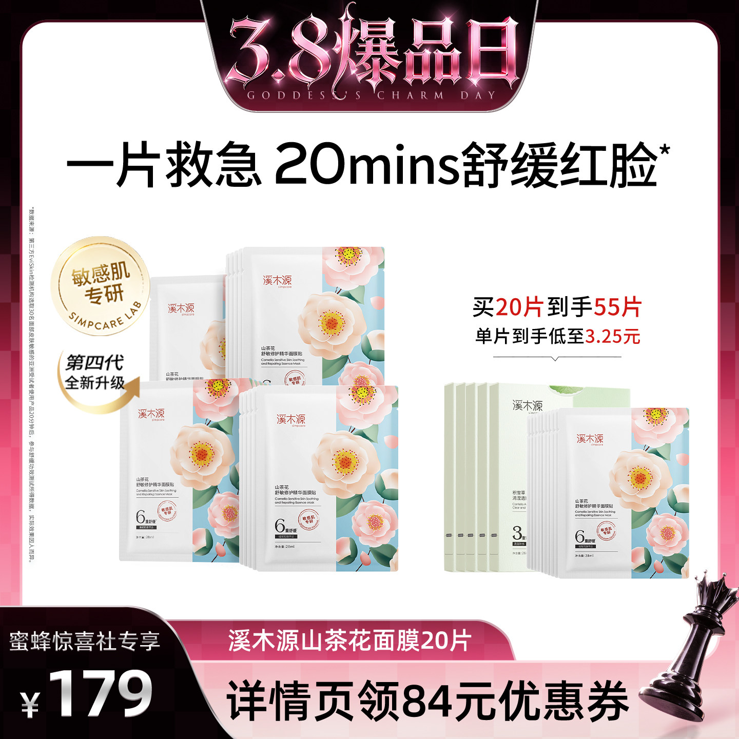 📚 【38爆品日】溪木源山茶花面膜补水保湿面膜贴敏感肌DR