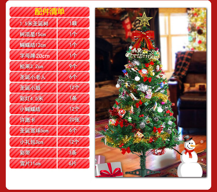 📚 1.5米豪华圣诞树节日圣诞礼品儿童装饰带灯圣诞树
