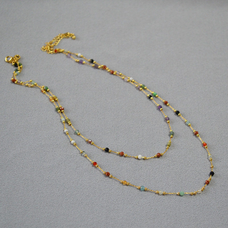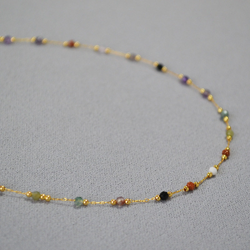 📚 日系复古甜美彩色天然石头个性百搭细巧简约气质短款项链锁骨链女