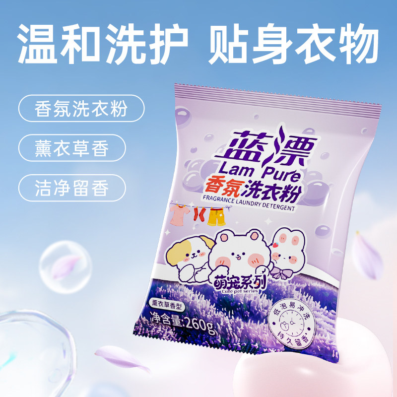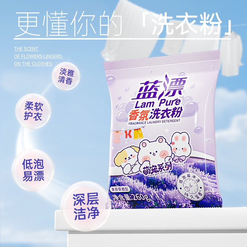 📚 蓝漂260g去渍去污香氛洗衣粉家用家庭装补充袋装机洗手洗清洁装