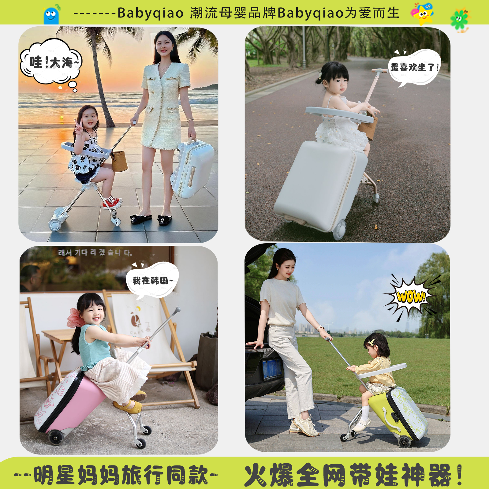 📚 【顺丰包邮】巧孩子儿童可坐行李箱儿童旅行箱带娃神器溜娃旅行箱