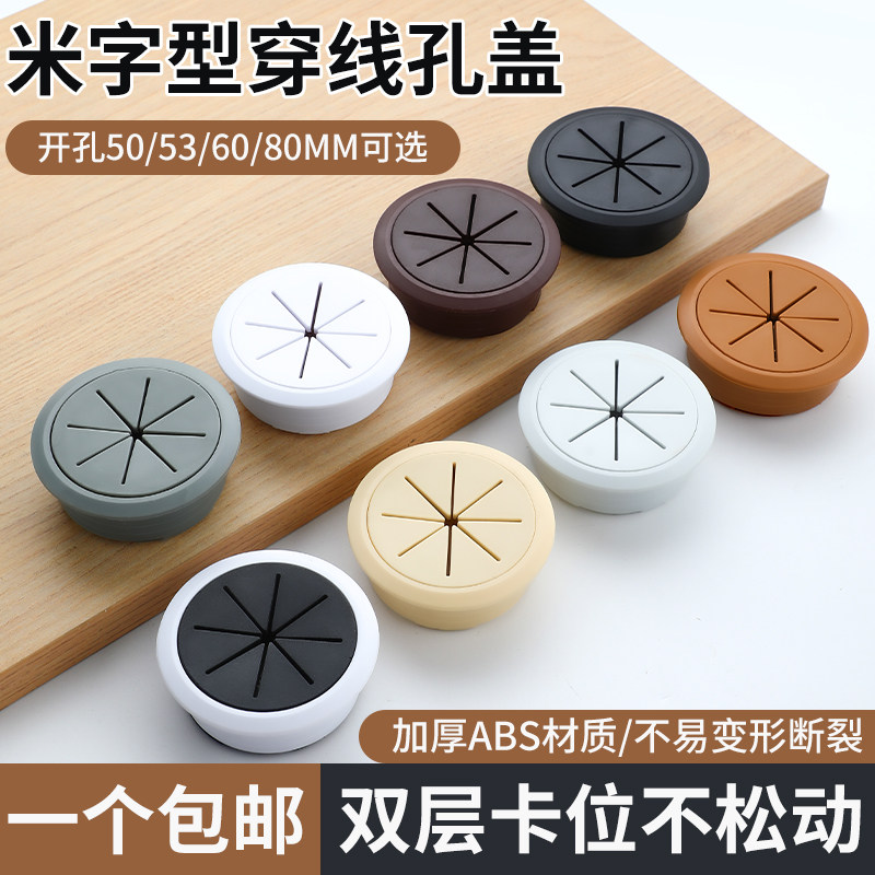 📚 电脑办公桌穿线盒孔盖桌面走线盒出线孔盖塑料开孔盖圆形米字型