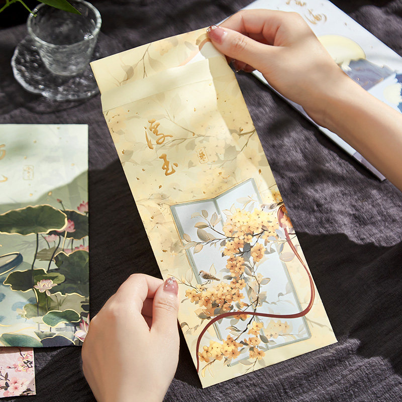 📚 复古信封信纸套装精致烫金手写信浪漫表白情书送男友古风信笺纸唯美古典中国风高级感成人礼信签纸可定制logo