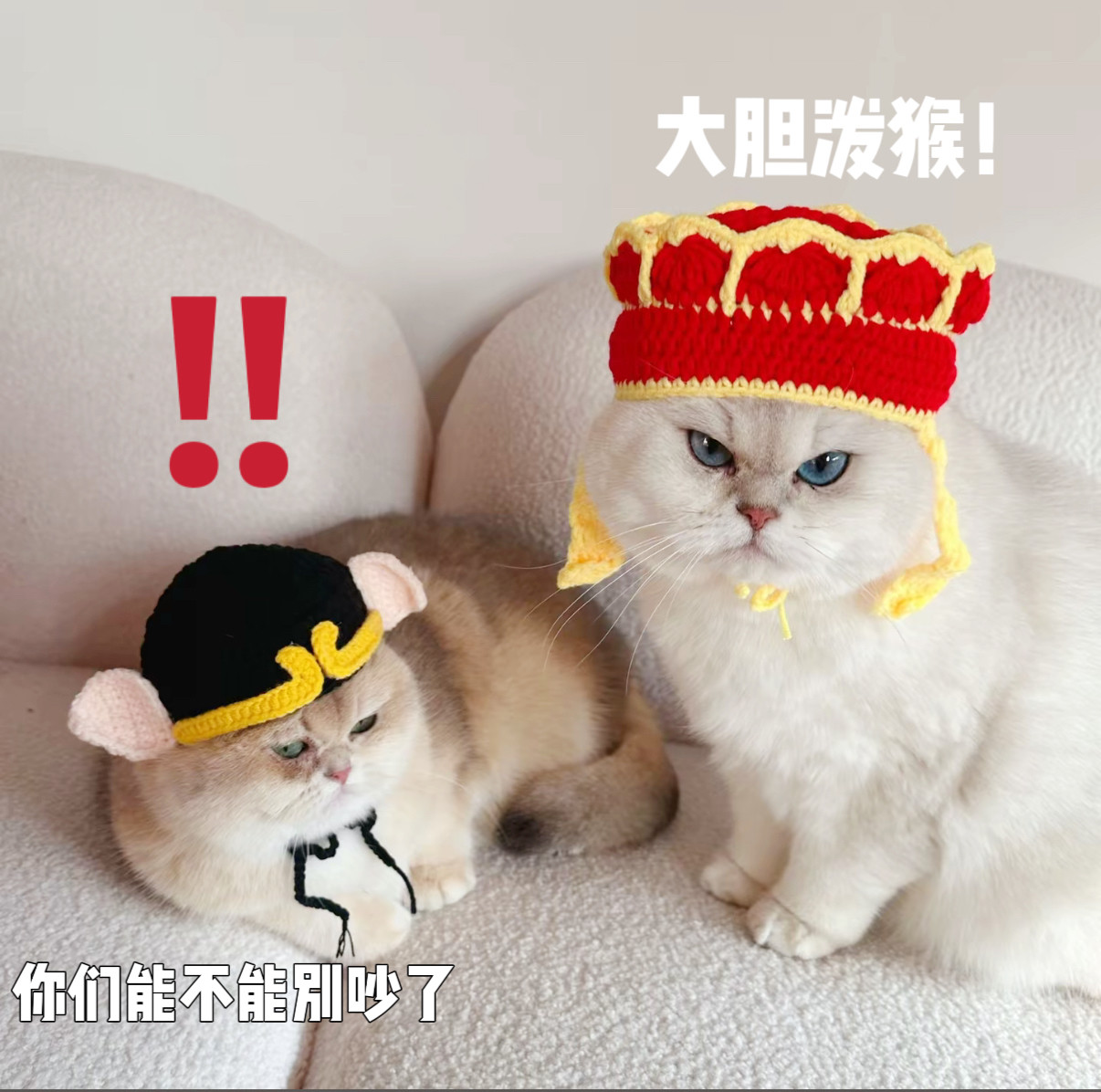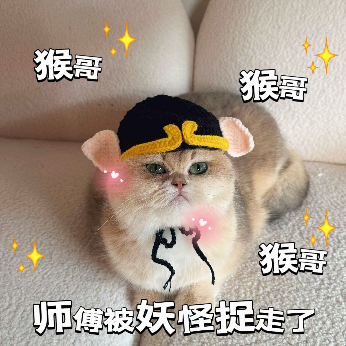 📚 猫咪猪八戒帽子露耳朵搞笑宠物猪咪西游记周边唐僧小配饰毛线头套
