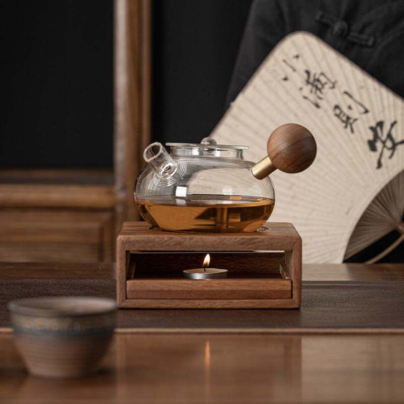 📚 胡桃木花茶温茶器底座茶壶加热底座温茶炉暖炉茶器侧把壶家用套装