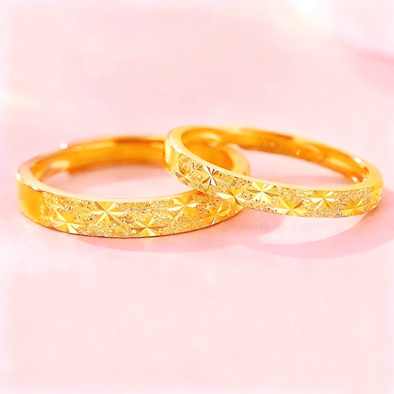 📚 满天星开口金包银戒指女款光面情侣对戒男女士情侣款星形纹理指环