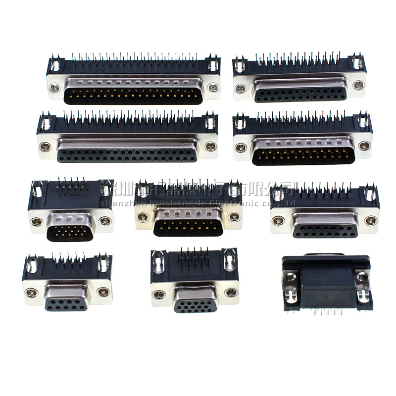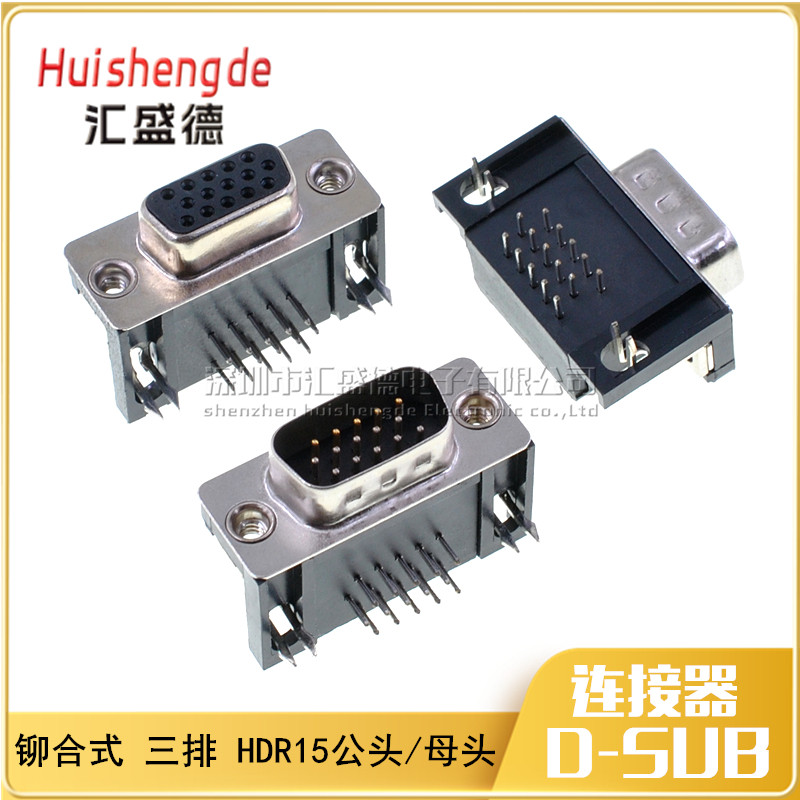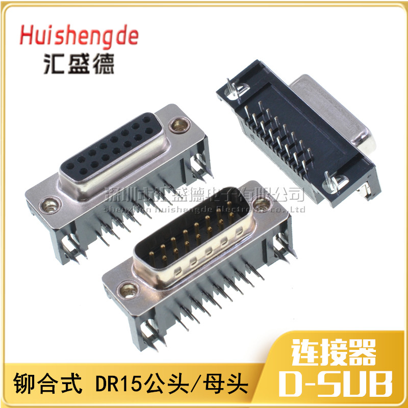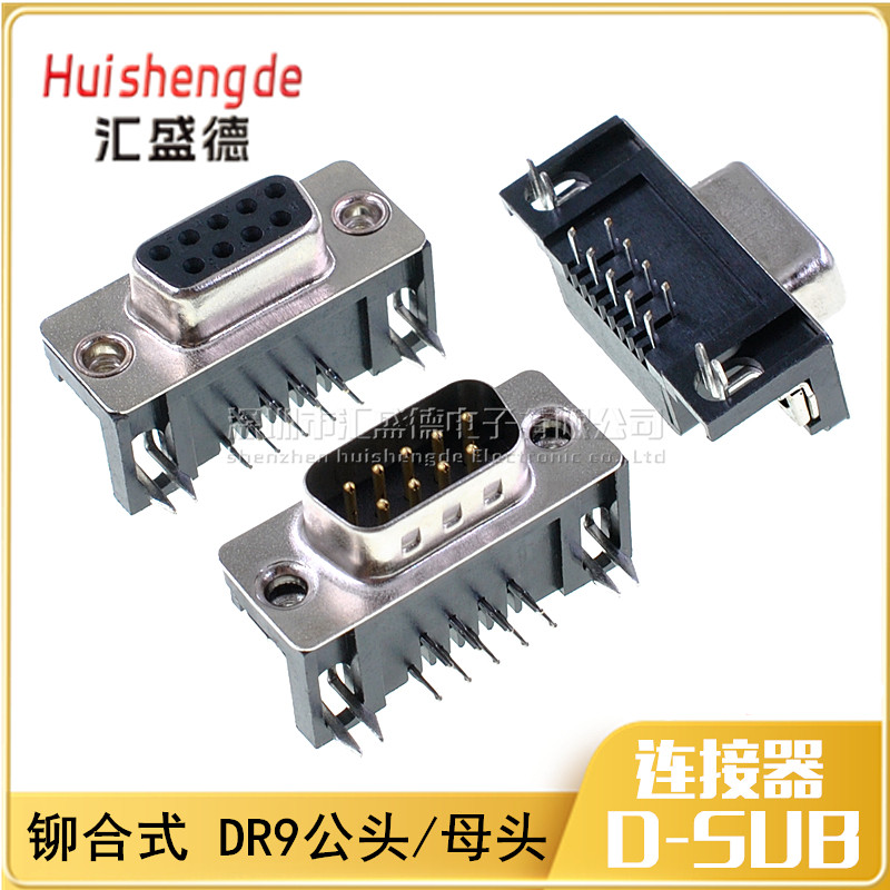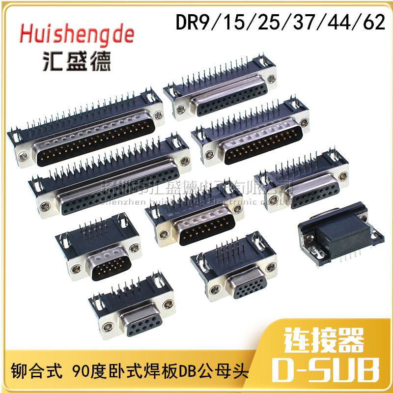 📚 铆合式DR9/15/25/37 DB公头/母座 焊板插板式 90度弯脚 串口VGA座