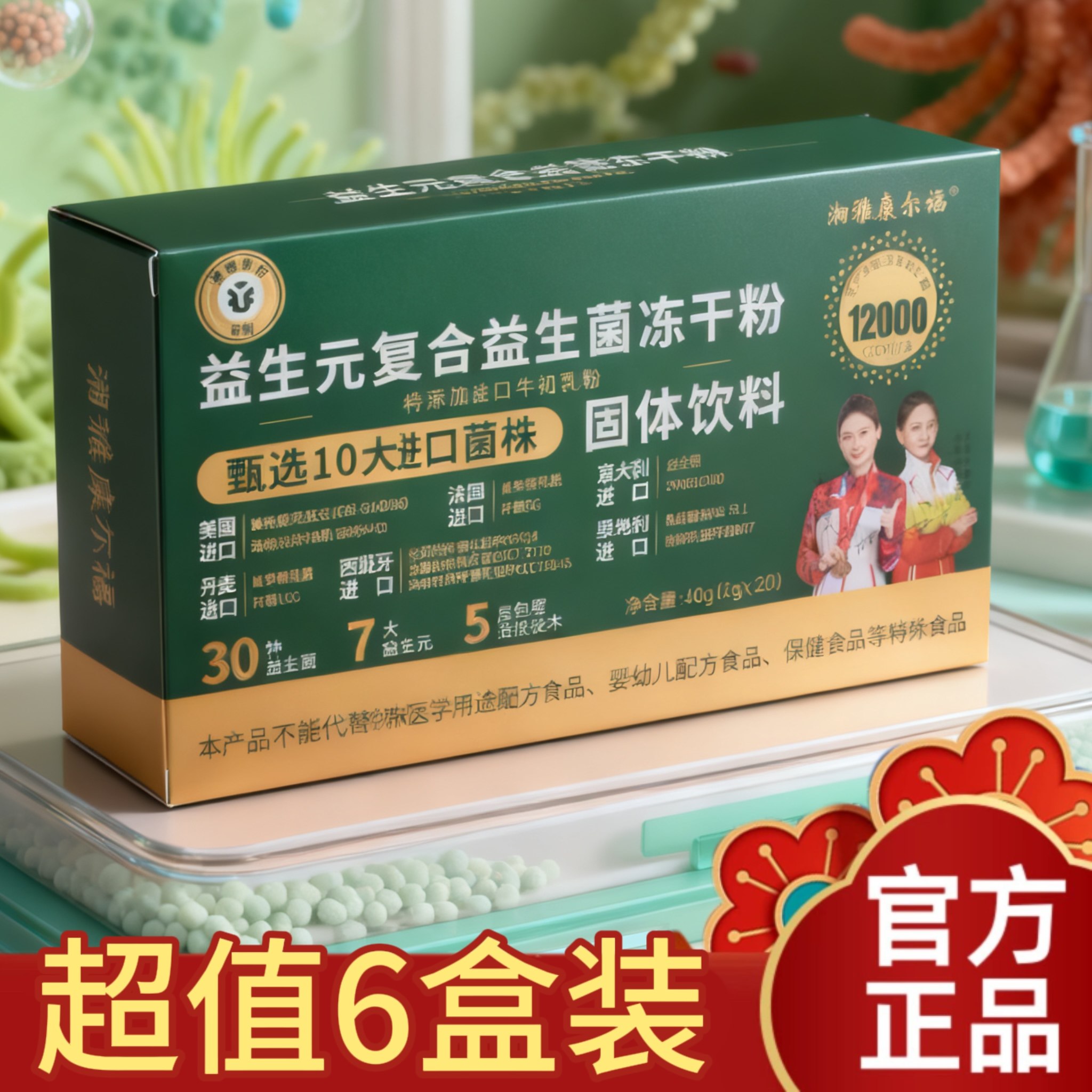 📚 【超值6盒装】湘雅制药益生菌40g益生元复合益生菌冻干粉呵护肠胃