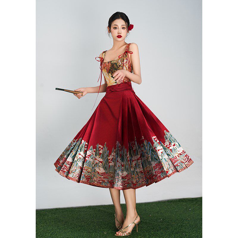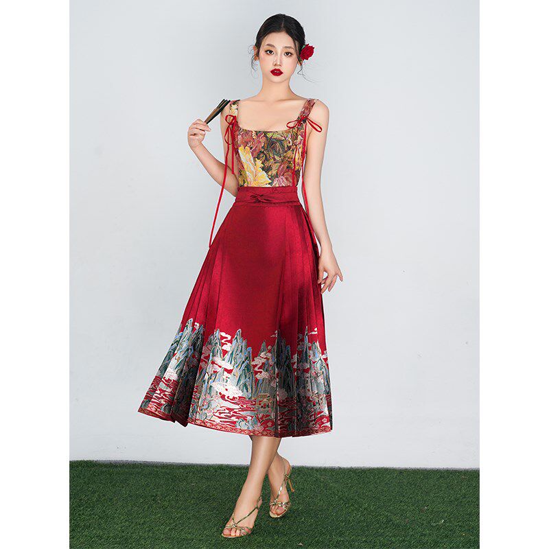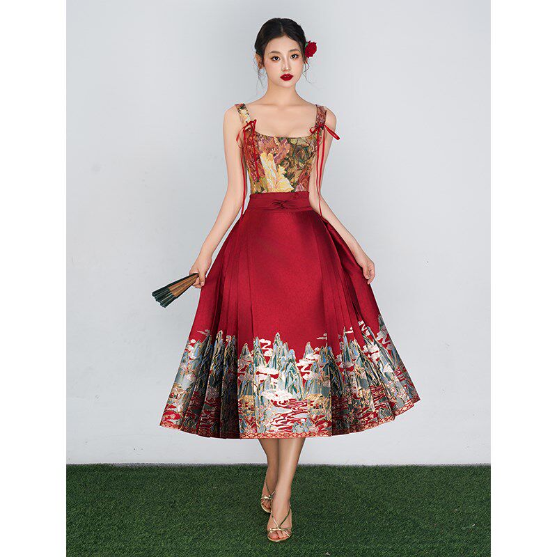 📚 红色马面裙套装2024新款女成人小个子新中式国风短款婚服订婚敬酒