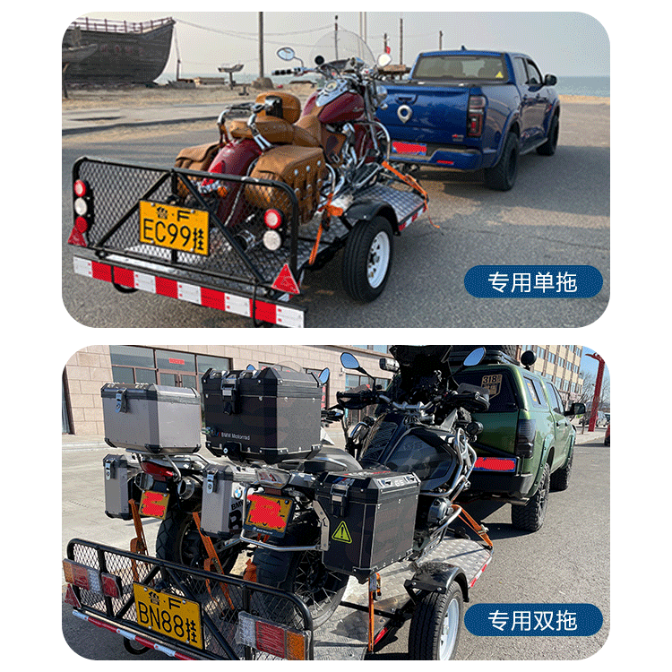 📚 凯越摩托车拖车重机车拖车架平板拖车挂车摩托车拖板后挂式可上牌
