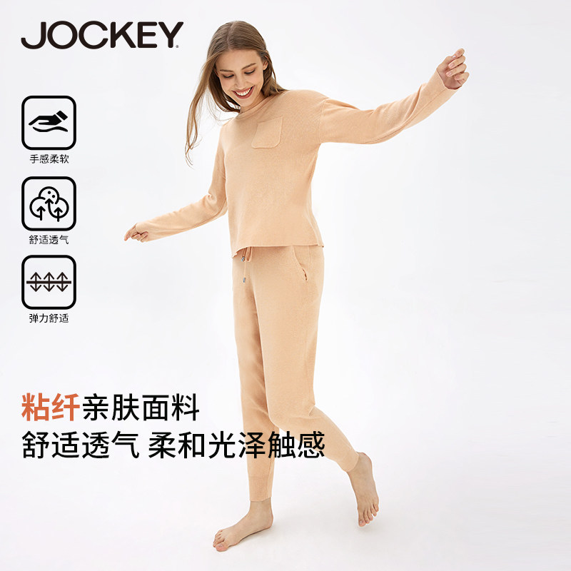 📚 Jockey睡衣女秋冬季纯色甜美可外穿长袖家居服套装宽松休闲