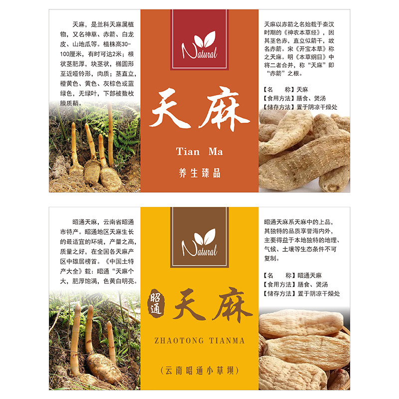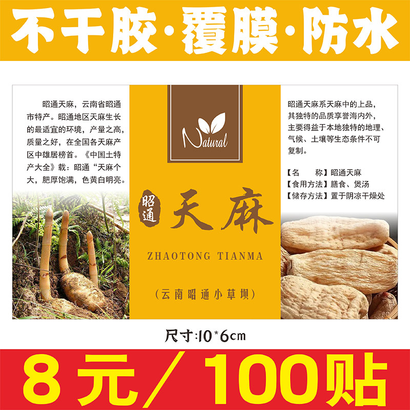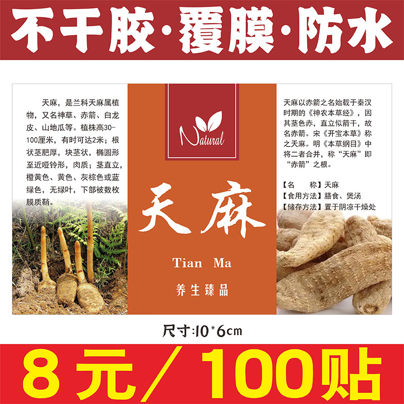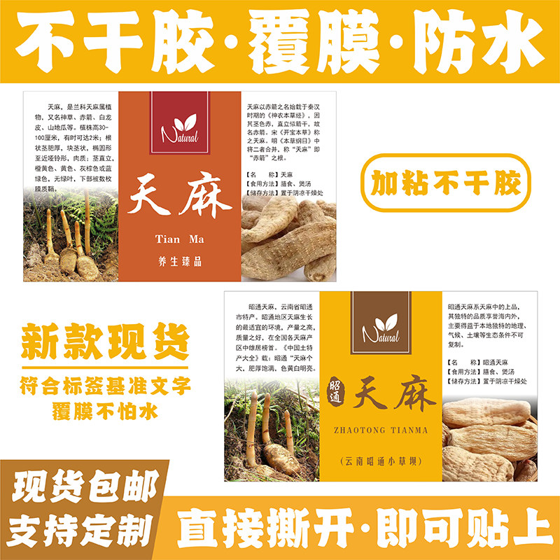 📚 新版现货昭通天麻粉中药材包装商不干胶防水贴纸标签定制定做印刷