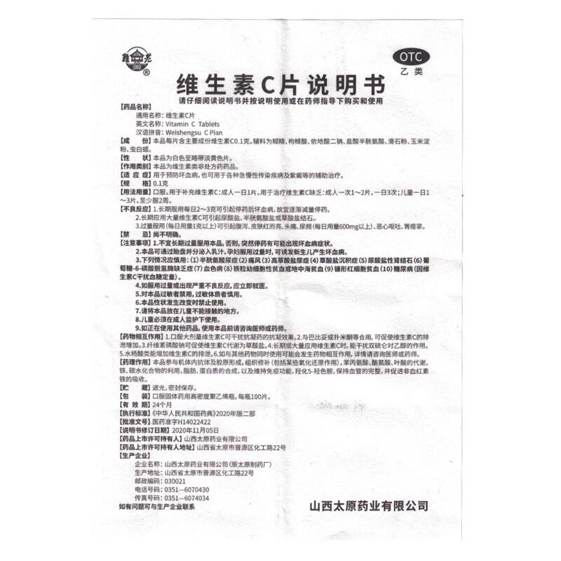 📚 难老泉 维生素C片 100mg*100片/盒 国药OTC正品VC片补充维c