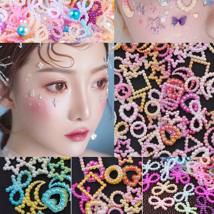 📚 爱心形混装蝴蝶珠子小配饰五角星指甲点缀流沙油珍珠圈手工亮片