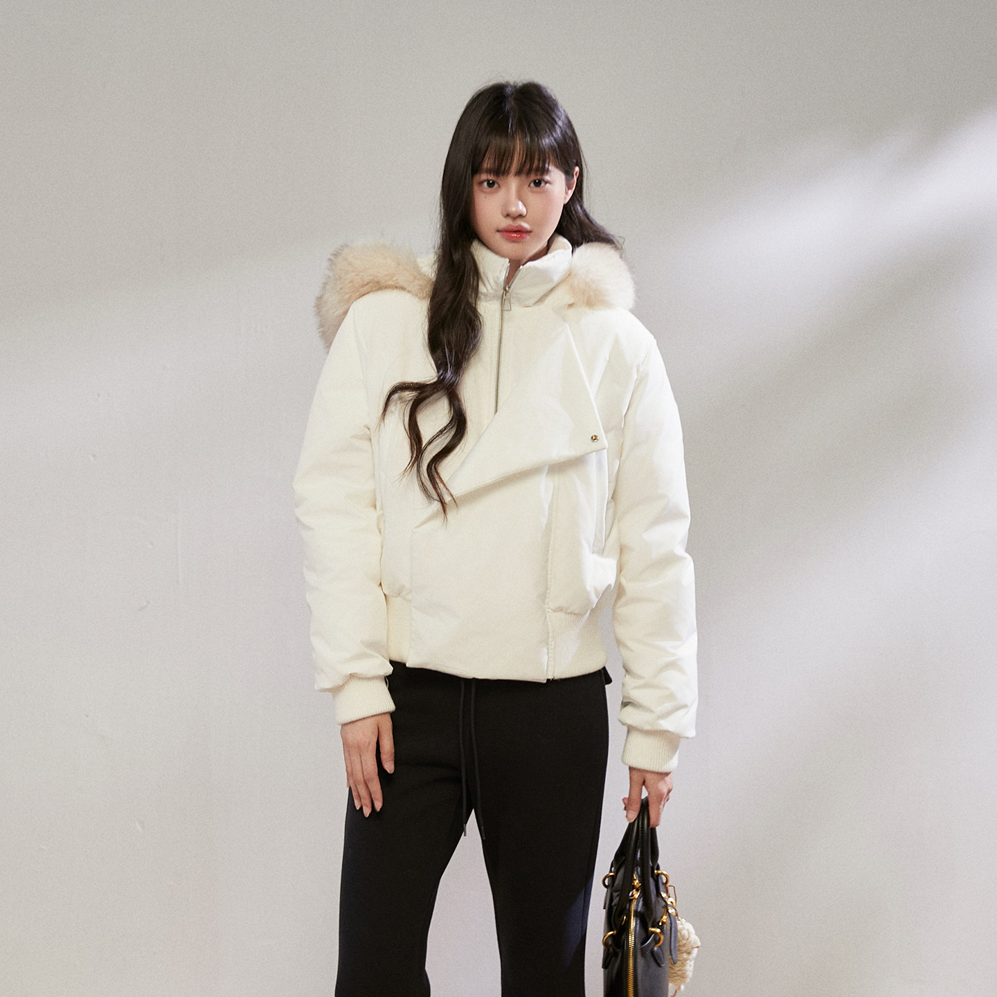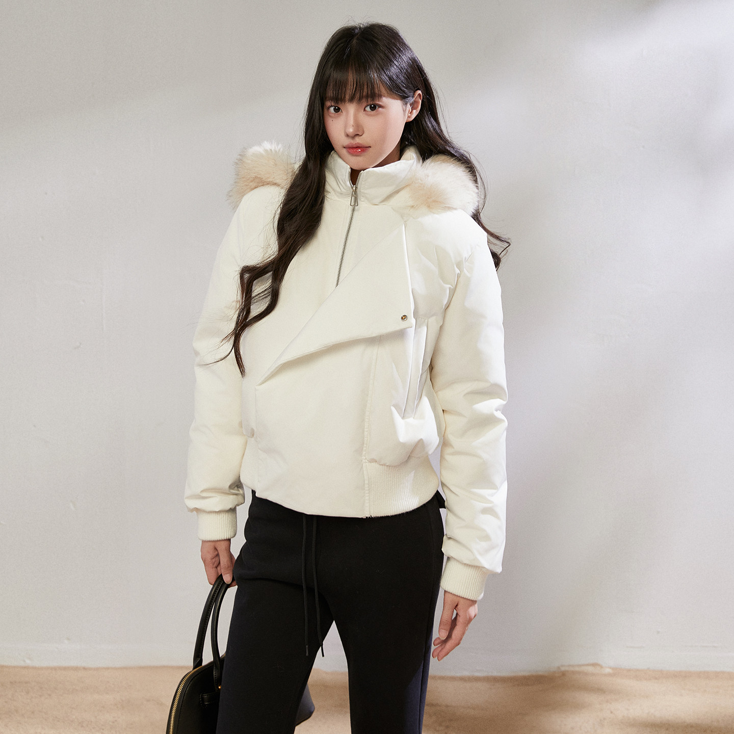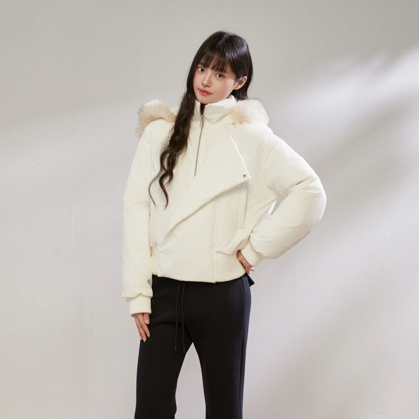 📚 King Prince韩系连帽大毛领短款收腰羽绒服女冬季白鸭绒加厚女
