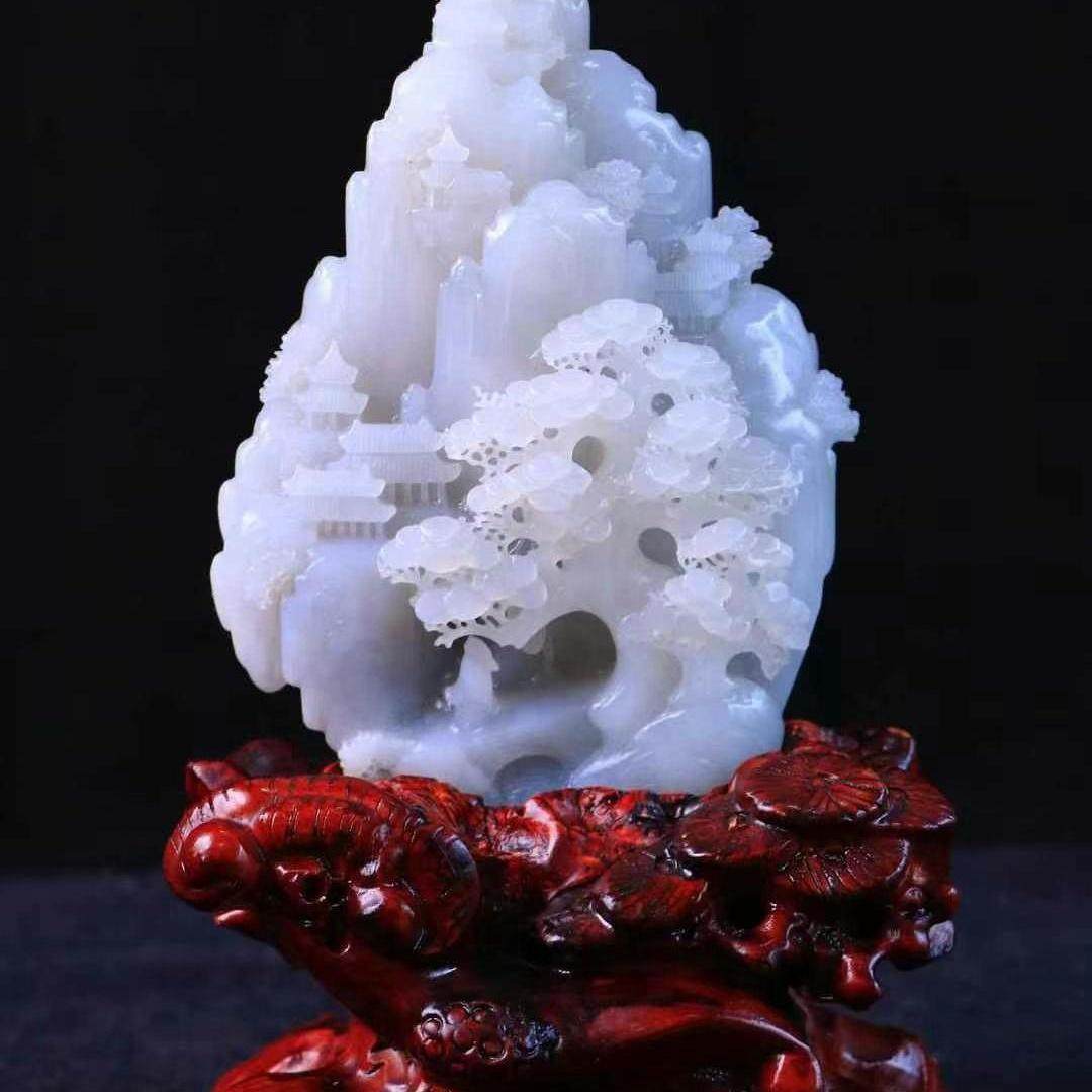 📚 天然和田玉白玉富贵山居摆件摆件男女款玉石摆件玉器玉坠玉摆件