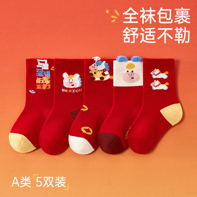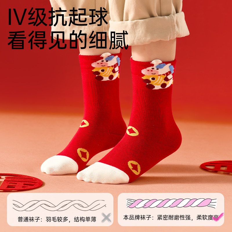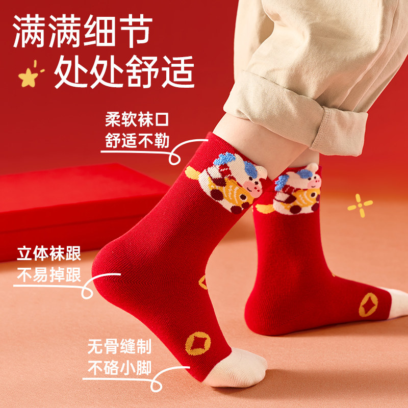 📚 儿童袜子冬季红色本命年10A抗菌高筒袜女童棉质可爱无骨a类新年袜