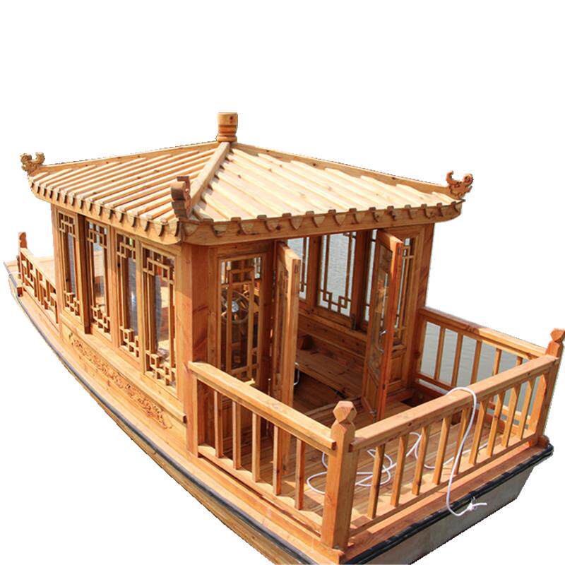 📚 木船画舫餐饮会议接待宾馆房船屋钢制小型电动彷古水上观光旅游船