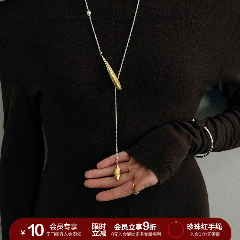 📚 果荚双面叶片长项链毛衣链多戴法复古百搭小众设计感配饰SOFTROOM