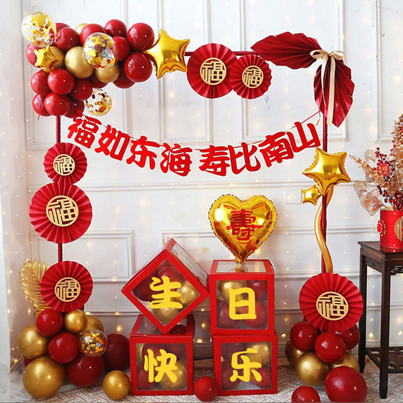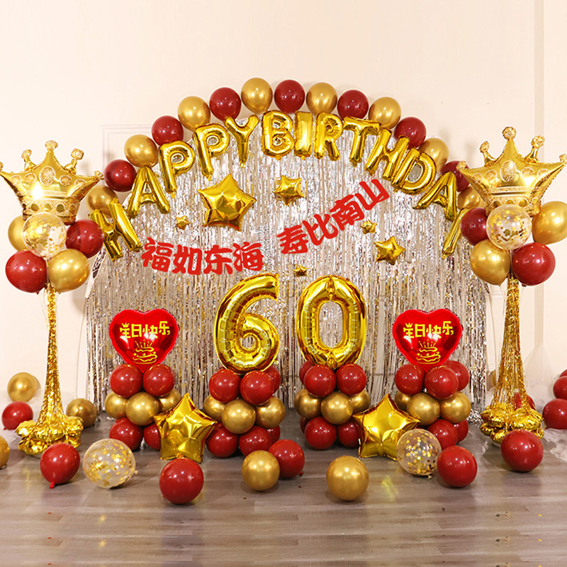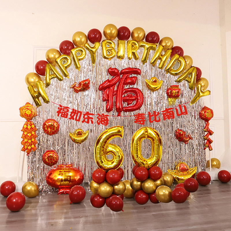 📚 爸爸过60寿辰妈妈80生日场景布置品老人寿宴六十大寿装饰气球拱门